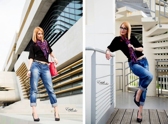 Waw il est trop beau !!! Tu as bien fait de le garder. Et ce look est complètement géniale. Hyper casual mais il te met superbement bien en valeur. J'aime le côté « je suis une bombe même avec un jean boyfriend et des ballerines ! ». Ce foulard ajoute vraiment un côté habillé. FAN