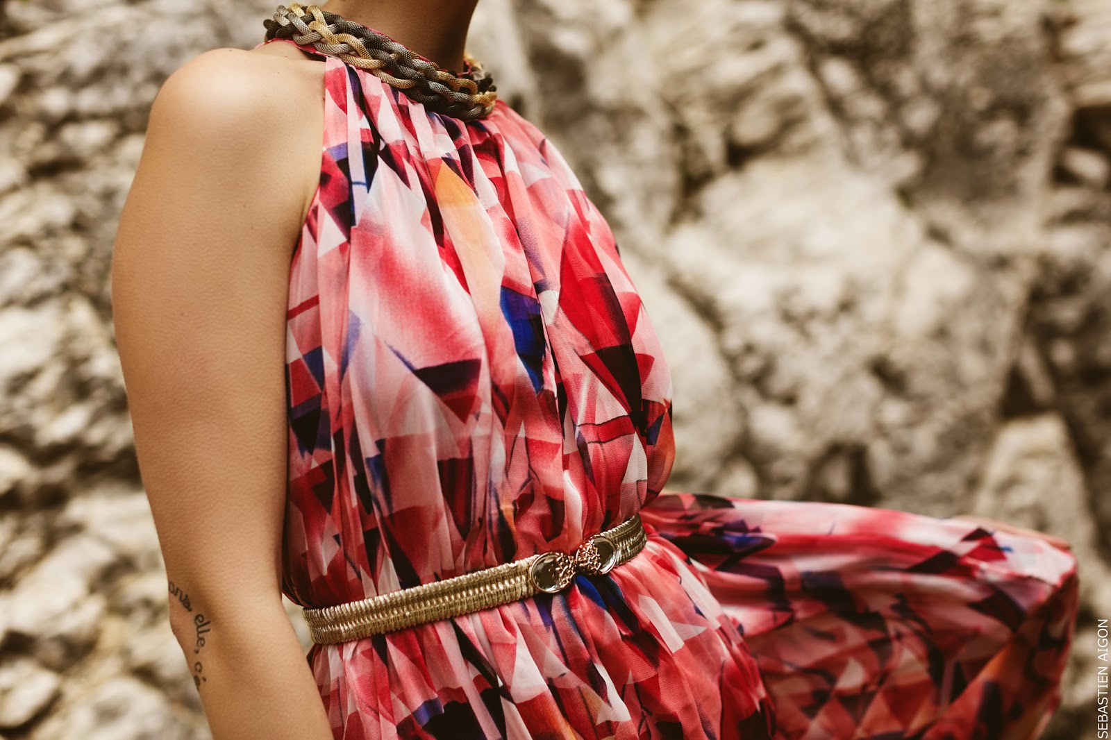 Je commence avec cette superbe robe longue aux couleurs pastels qui est mon
