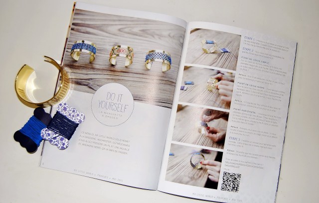 On la customise sois même grâce aux fils bleus fournis et un tuto est proposé dans le Mag du mois!