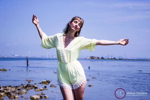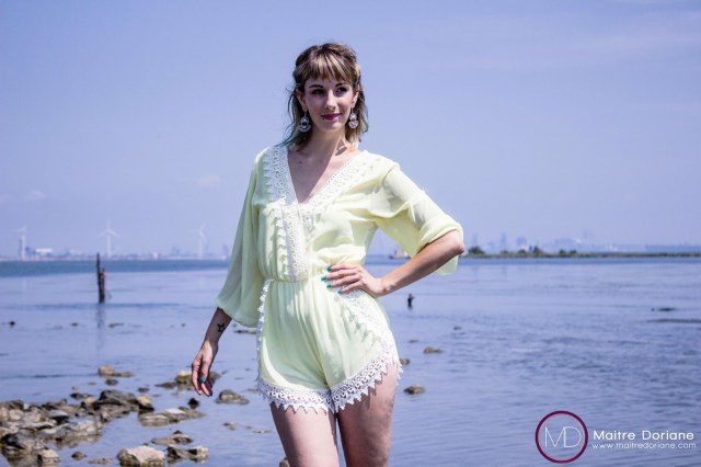 Je porte sur moi une Combi-Short Jaune en mousseline, hyper légère et