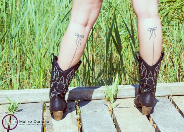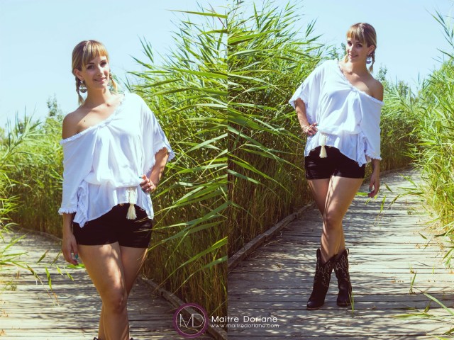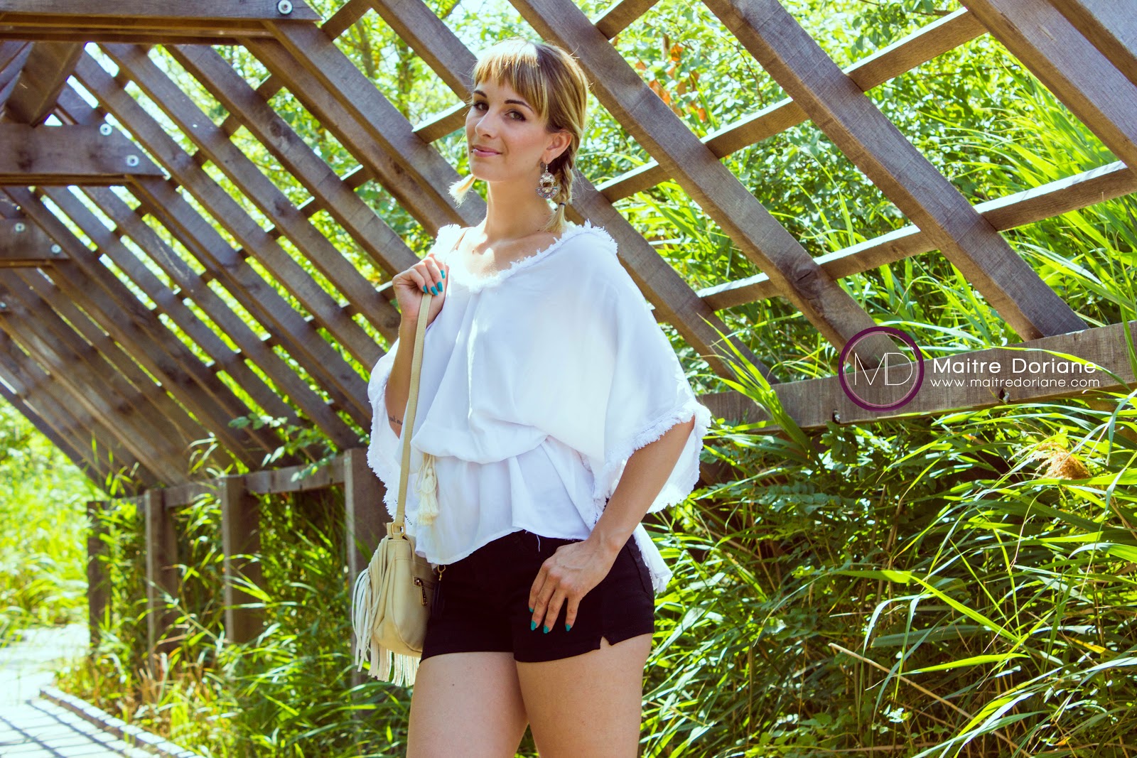 Je porte sur moi : un short noir associé à un kimono blanc et des santiags noir Zaza Pata.