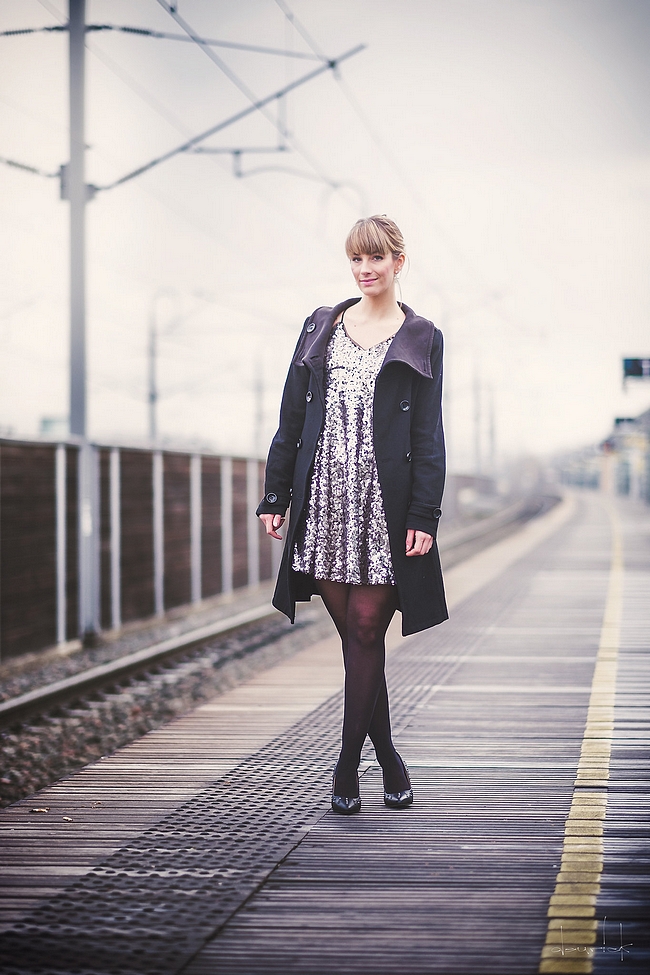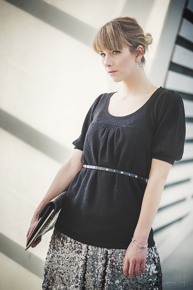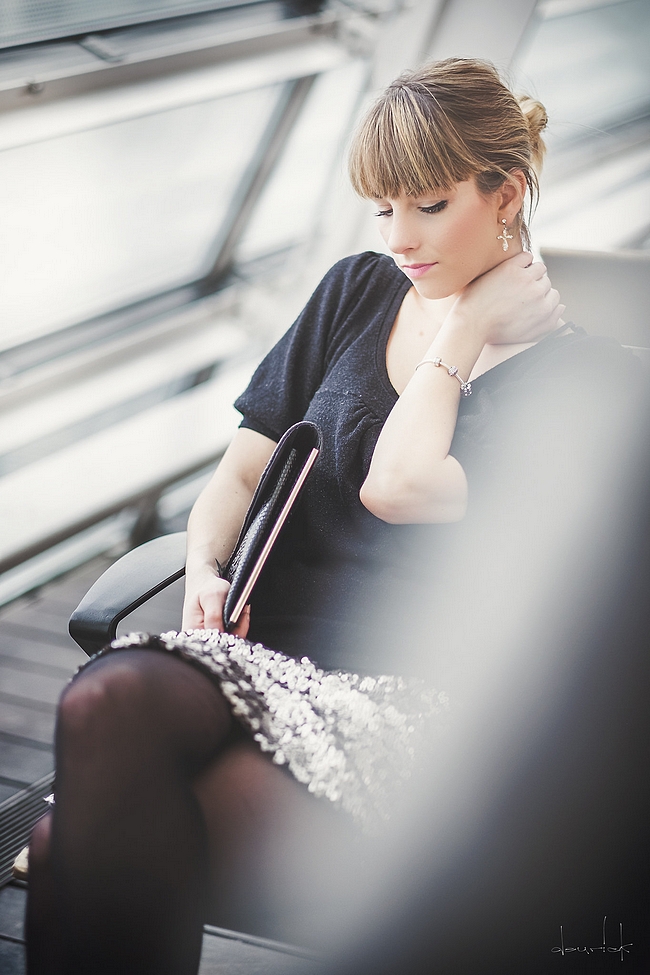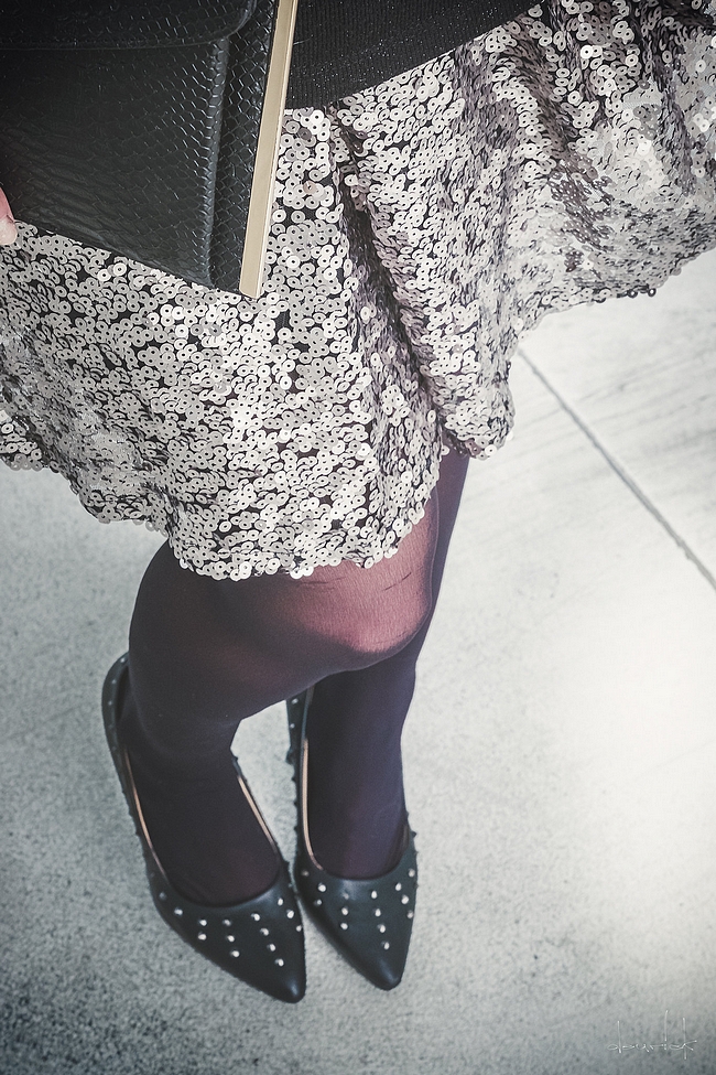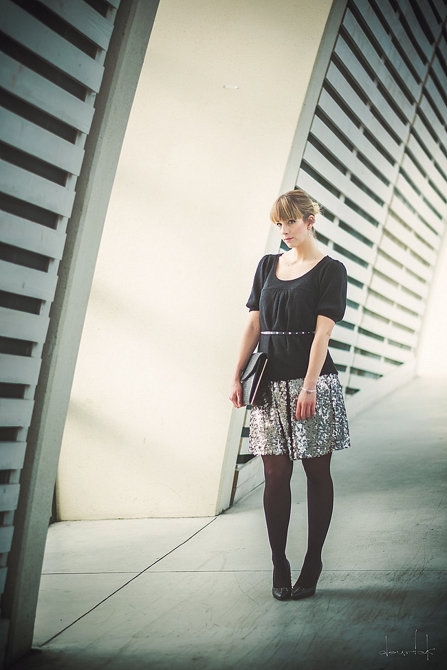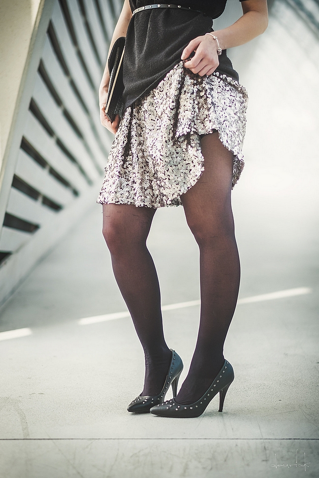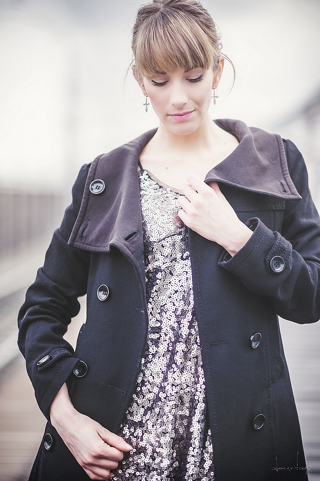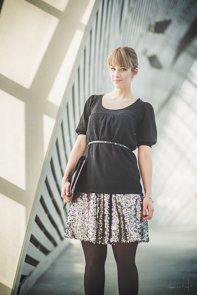 # Salut à tous ! Comme vous avez pu le constater je ne vous ai pas proposer de Look Spécial Réveillon du Nouvel An cette année, et pour cause, j’étais du côté de Chambéry et d’Annecy et je n’ai pas vraiment eu le temps de vous shooter mon look du soir ! Pour me faire pardonner, je me suis donc amusée à vous shooter mon look de lendemain de soirée, avec mon ami Fred Deurick dont vous avez beaucoup apprécié les dernières photos ICI. J’avais pour l’occasion sortit ma petite robe à sequins de chez Mosquitos et à mes pieds mes escarpins cloutés de chez Zara. Comme vous vous en doutez, la fin de soirée  (que dis-je, le début du petit jour ) est toujours difficile un lendemain de fête, et c’est bien souvent qu’on enfile un gros pull par dessus sa robe , un manteau et qu’on rentre pieds-nues et les talons en main ! Parfois même, on à l’impression que la route n’est pas tout à fait droite,  mais ça, c’est une autre affaire ! Quoi qu’il en soit, j’espère que vous apprécierez ces photos,  je remercie encore Fred qui à fait un superbe boulot, n’hésitez pas à commenter et nous laisser vos avis !! à très vite!