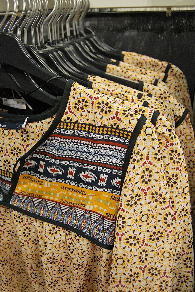 Fusion : Une collection esprit ethnique, bohème, beaucoup de rouge, kaki et gris .