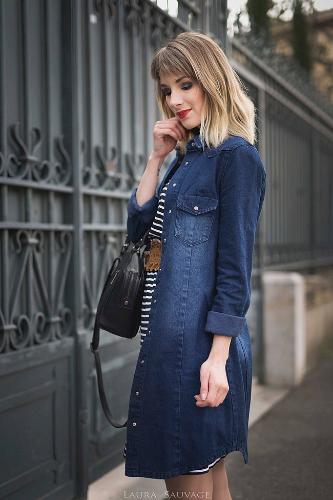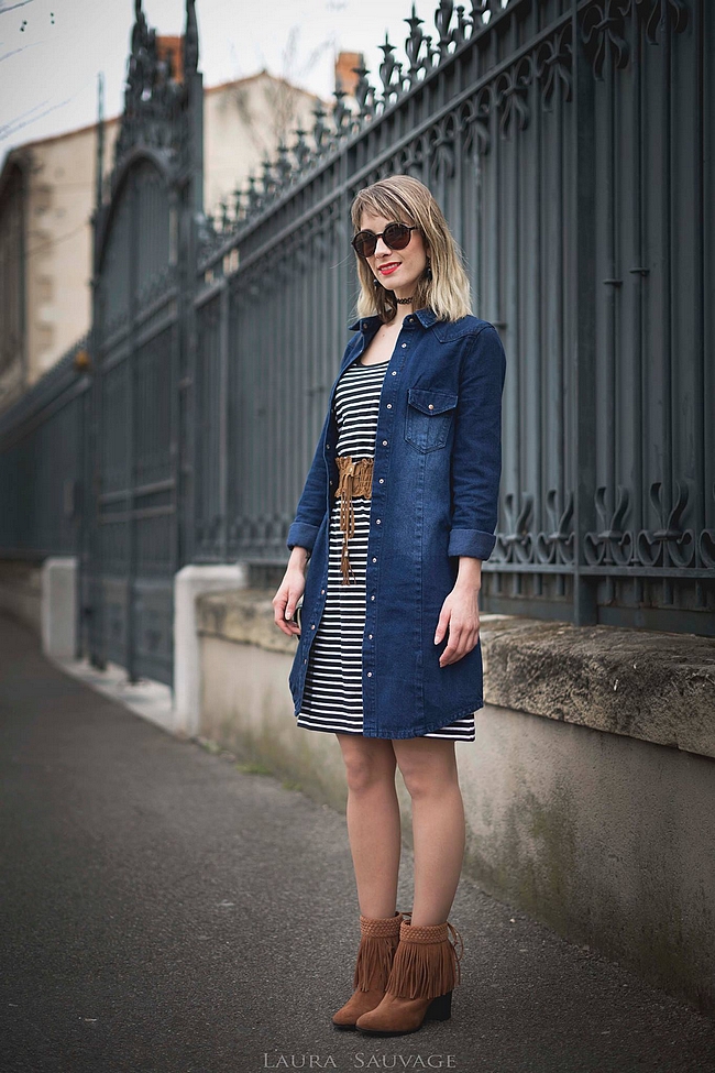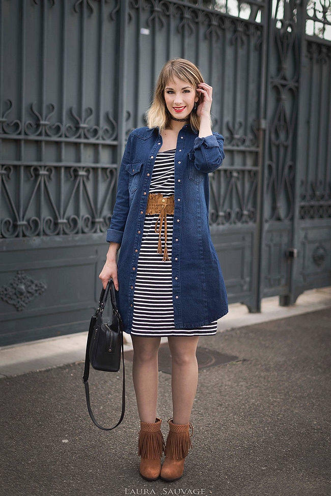 que j’ai associé à ma robe en Jeans (déjà vue ICI)  laissée ouverte façon « veste » .