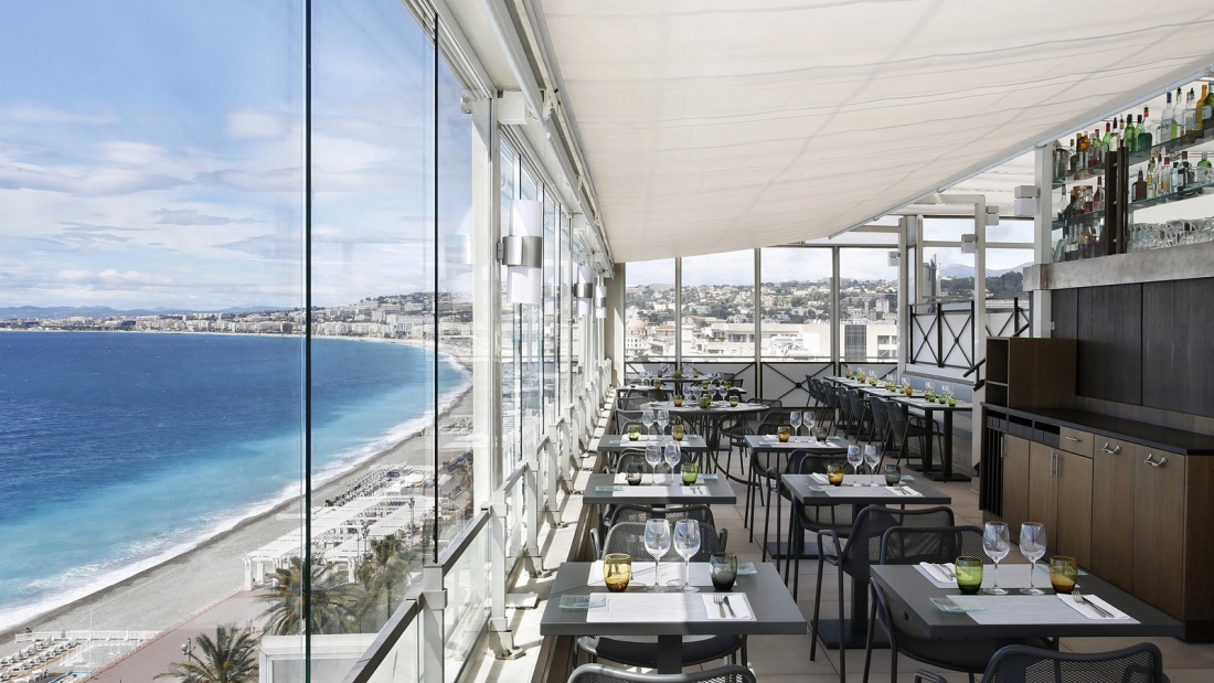 # Rooftop Le Méridien, terrasse avec vue la promenade des anglais et la plage.