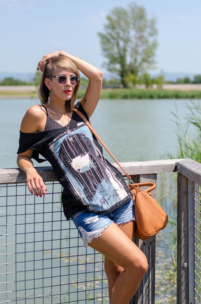 Une tenue simple, mais totalement efficace puisque je porte mon short en jeans préféré,