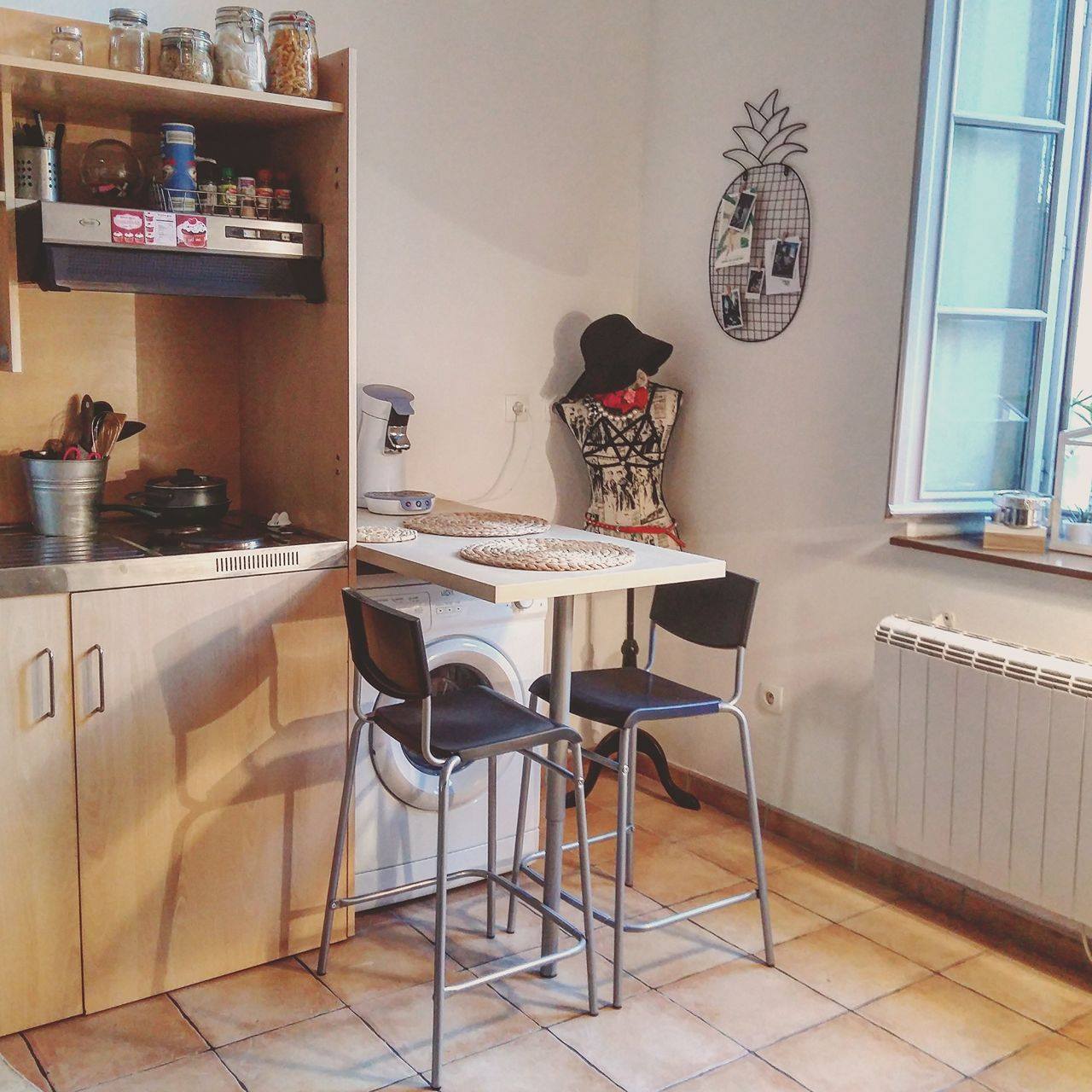 # Hey girls ! Et bien me voilà de nouveau dans les cartons de déménagement ! Vous allez commencer par croire que j’adore ça ( 5 fois en 3 ans quand même) mais non, croyez-moi , ce n’est pas toujours une partie de plaisir ! Mission du jour : transformer mon nouveau studio en un habitat pratique et joliment décoré grâce à des rangements malins! Pendant des années j’ai accumulé tout un tas de choses inutiles (vaisselles, bibelots, fringues que je ne portes plus et j’en passe ) j’ai donc appris pour commencer à faire du tri, donner, vendre (parfois à contre cœur) tout ce dont je ne me servais plus !! J’ai appris également à arrêter de stocker en grandes quantités, j’opte pour des produits en petit format ! (8 gels douches, 6 shampoings, 4 masques cheveux, 150 vernis à ongles, et tout autant de produits ménagés, tous en format XXL alors que je suis seule mais pour quoi faire dites moi !?) Mais il faut le dire, ça n’était pas suffisant, j’ai tellement, tellement de fringues !! Il vas donc falloir que je vende un max sur Vinted et que j’organise de nouveau des Vides-Dressing ! (d’ailleurs si ça vous intéresse, dites le moi ) Bref tout ça pour dire, à force de déménager, j’ai fini par maîtriser l’art de l’optimisation de l’espace ! Apprendre à ruser, opter pour des meubles pratiques, modulables et peu encombrants pour rendre un petit studio aussi confortable et fonctionnel qu’un « vrai » appartement. Voici donc quelques idées et conseils pour OPTIMISER un maximum un petit espace ! – Des étagères en hauteur : on aménage intelligemment les murs de son studio et peut même placer des étagères au dessus des portes ou dans les placards – La table basse polyvalente qui se transforme en table pour le repas : pratique ! – Un canapé convertible si on a pas de vrai chambre à la maison ni de place pour un lit d’amis. – On utilise l’espace sous son lit, ou on opte pour un lit avec des tiroirs au dessous ! pour y glisser des caisses de rangement et tout un tas de choses! – On utilise l’espace disponible au dessus des WC, du lave-linge ou du lave-vaisselle en y installant des étagères. Moi j’ai carrément installer mon bar au dessus du lave-linge: Gain de place et en plus je cache discrètement ma machine qui se trouve malheureusement en plein milieu de la cuisine-salon dans mon studio ! J’ai (presque) réussi à caser tout ce que j’avais dans mon ancien appart de 55 m² dans un studio de moins de 30 m², donc vous voyez, rien n’est impossible, il suffit juste de bien réfléchir et d’utiliser un maximum de surface (sans que ça paraisse trop encombré non plus! ) Dites moi ce que vous en pensez et n’hésitez pas à me souffler vos propres idées !! Des bises les amis, à très vite, les filles !
