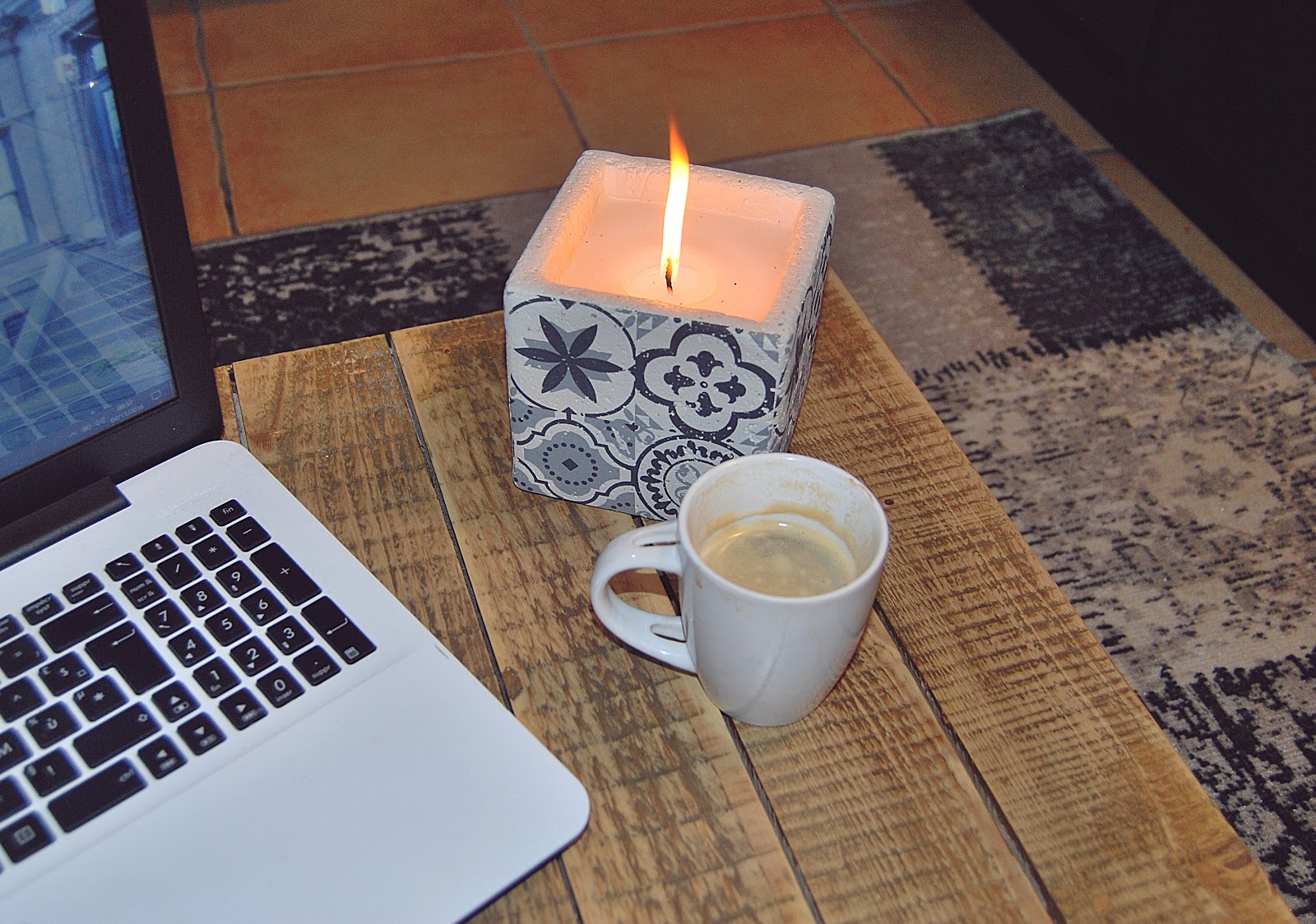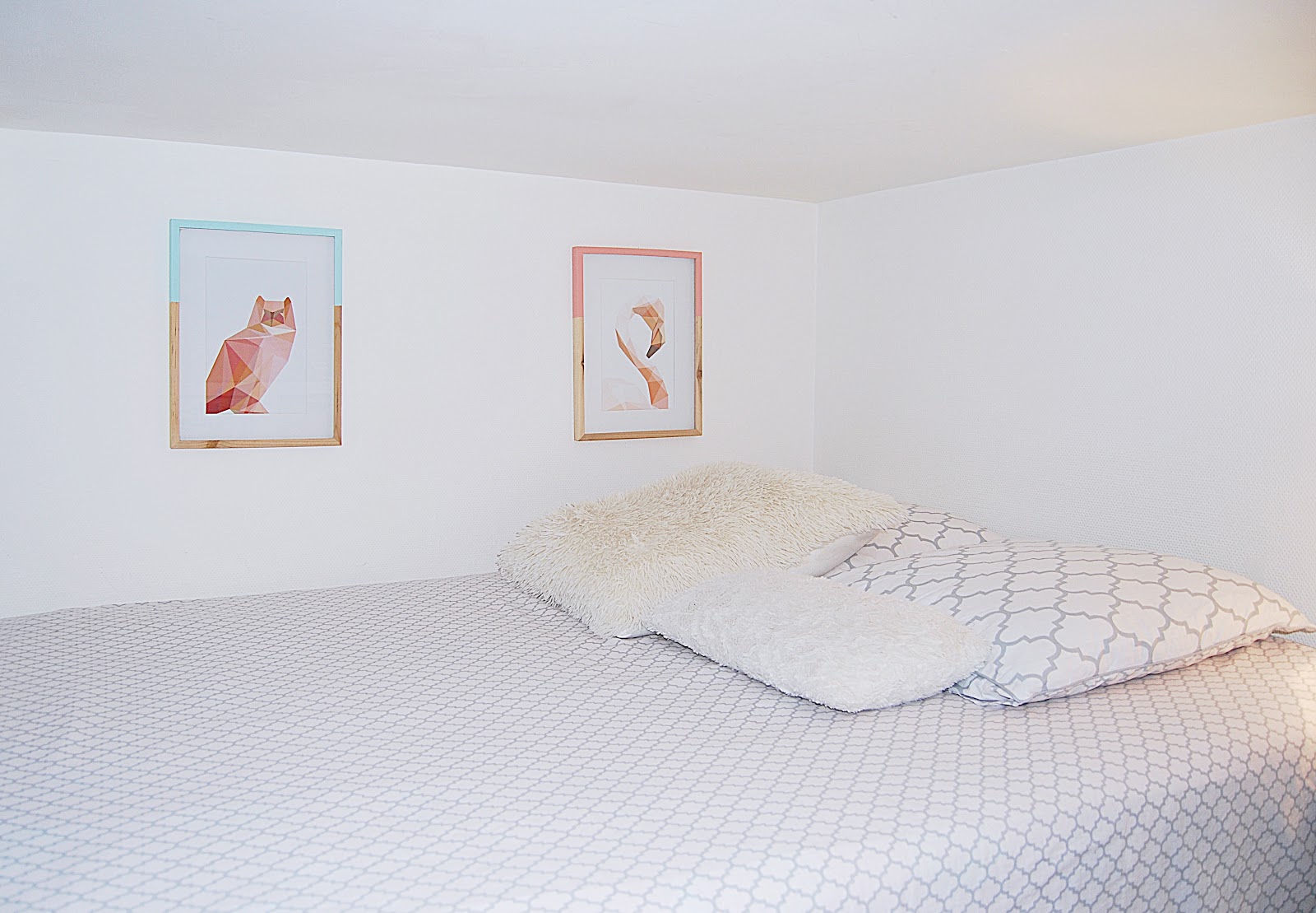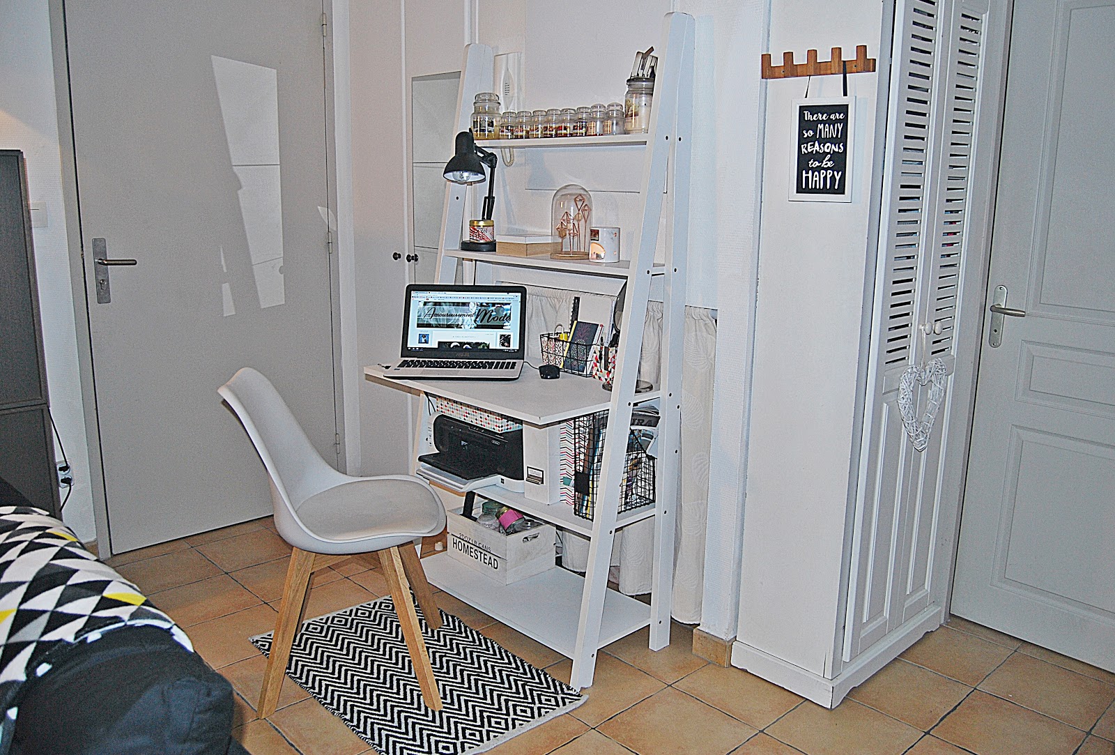 # Hey Friends ! Je vous avais promis il y a quelques semaines de vous présenter mon nouveau chez-moi : My Tiny Home – comprenez ma maison minuscule – comme j’aime l’appeler ! J’ai mis un petit moment à vous faire cet article tout compte fait , pour plein de raisons, mais surtout parce que j’ai mis un moment avant de me sentir bien chez moi . J’ai eu beaucoup de mal à m’adapter à ce tout petit studio d’étudiant, moi qui vivais dans un appartement immense avant cela. Au début, je me sentais oppressée, étouffée, puis terriblement seule aussi. Il à d’abord fallu que je rachète pas mal de meubles suite à ma séparation, que je retrouve mes marques et mes repères, que je m’adapte ! Je n’avais ni TV, ni internet, et se retrouver seule chez soi le soir en rentrant du boulot, avec pour seule compagnie son chat, et son assiette de pâtes face à un mur, croyez-moi ce n’est pas drôle du tout ! Donc pas évident tout ça . Mais maintenant tout est rentré plus ou moins dans l’ordre, je me sents beaucoup mieux, tout est en place, j’ai trouvé mes repères, j’ai décoré mon appart à mon goût, et même si c’est encore petit et que je n’ai pas trouvé de solutions à cela, j’aime finalement bien mon petit studio ! Côté Salon/Cuisine/Tout en un : J’ai parcouru tous les magasins possibles et imaginables avant de trouver mon canapé. Il m’en fallait un deux places et si possible convertible . J’avais un budget plus que serré. Il y avait le 1er prix d’ Ikéa, mais la qualité était vraiment BOF. J’ai pas mal hésité avec celui çi chez Alinéa, il n’était pas disponible sous 3 mois. Pour finir, mon choix c’est tourné vers celui là sur le site d’Auchan en promotion, et qui semblait de bien meilleur qualité, rien qu’à voir l’épaisseur. (au final, j’en suis un peu déçu car il se déforme et « glisse » dés que je m’assoie, sans parler des boutons qui se décousent déjà mais bon PASSONS, ça m’énerve rien que d’en parler ). Pour la/les tables basses : Je voulais depuis des mois déjà une table basse en palette, j’avais épinglé des tonnes d’images inspirantes sur Pinterest , j’ai donc trouvé une jolie palette pas trop grosse pour mon petit salon et j’y ai fixé des roulettes ! Tadaaam ! ( merci papounet ) La deuxième table basse elle, vient de chez Casa, j’en voulais une comme celle çi depuis un moment, parfaite dans l’esprit Industriel que je veux donner à mon chez-moi ! Mon tapis imprimé vient de chez Casa également, c’est pourtant rare que j’achète chez eux mais leurs nouveautés sont sympa ! Pour parfaire ma déco, j’ai ajouté deux coussins jaunes sur le canapé, pour donner une petite touche de couleur et parce que vous le savez, le jaune est hyper canon et surtout très tendance, puis d’autres imprimés ethniques trouvés chez Maison du monde ( ici et ici ) … En parlons de maison du monde, vous avez remarqué que les carreaux de ciments font leurs grands retours ? Regardez ces beaux bougeoirs : ICI ICI ou LA , ne sont t’ils pas canon ? Pour terminer avec mon canapé, j’ai également craqué sur ce plaid tout doux chez Babou, dont l’imprimé allait parfaitement avec mes coussins! Dans mon article Petit Studio, Maxi Idées, je vous avais déjà présenté le coin cuisine, je n’y reviens donc pas . Côté chambre, j’ai une minuscule mezzanine. La hauteur est d’un mètre vingt : en sommes, je monte m’y coucher uniquement . J’ai pu y placer mon lit, table et lampe de chevet (trouvé chez Centrakor comme vous l’avez vu sur Instagram) . J’ai pu stocker la moitié de mes fringues dans mes casiers ikea, les manteaux et gros pulls sont dans le placard de l’entrée. J’ai choisi une déco Cosy, Cocoon, Scandinave, comme dans mon ancien appartement, mais en bien plus petit -que dis-je- en minuscule ! (En passant, j’ai été obligé de revendre ma belle et grosse commode ) ; Pour finir, sous l’escalier, je stock mes caisses où sont rangés chaussures, sacs à mains et fringues à vendre. Ma salle de bain, elle, est si petite qu’elle n’est même pas présentable …. J’ai une douche à l’italienne, mais tellement peu pratique si vous saviez je m’en serais bien passé, j’ai de l’eau partout à chaques douches ! Sur ce les amis, je vous laisse découvrir tout ça en images, enfin si vous êtes toujours là !! Qui a lu mon texte jusqu’au bout ?? Commentez les filles !!!! des bises, à très vite les chéries, j’espère que cet article vous aura plus et inspiré !!