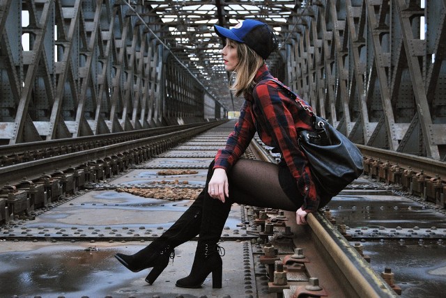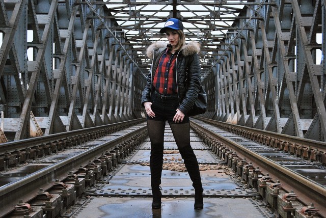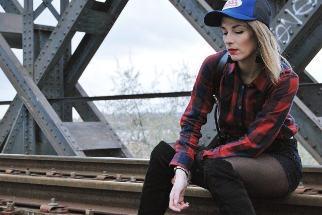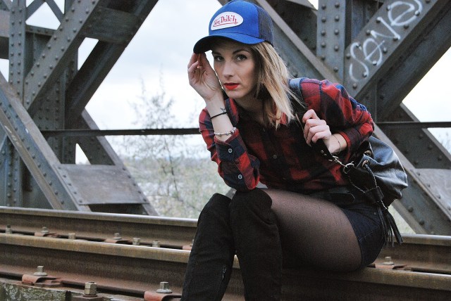 # Hello les amis ! Aujourd’hui on se retrouve pour un article qui me tiens particulièrement à cœur puisqu’il s’agit d’un LOOK en VON DUTCH, une marque qui à bercée ma jeunesse! Lancée dans les années 2000 par Christian Audigier. Avignonnais d’origine , il part s’installer à Los Angeles et devient très vite l’ami des stars. Il se fait connaître en utilisant la technique celebrity wear : il offre casquettes et tee-shirts à l’effigie de sa marque dans sa boutique de Melrose Avenue et paye les paparazzis pour photographier des stars comme Britney Spears, Justin Timberlake , Michael Jackson ou Madonna avec ses produits. Cette publicité fait sa réussite. Décédé en Juillet 2015 c’est aujourd’hui la sœur de Christian qui signe le retour de la marque, pour notre plus grand bonheur ! Von Dutch revient sur le devant de la scène avec son accessoire n°1: la casquette ! Son côté vintage rappelle des souvenirs d’enfance aux « Born in the 90’s » et son look a su nous conquérir ! Désormais la casquette s’affirme et s’affiche même sur les plus grands défilés ! Je suis donc très fière et heureuse de représenter la marque pour son grand retour ! A cette occasion je vous ai concocté une tenue Street-Chic avec une chemise à carreaux de la marque, un short en jeans et des cuissardes. Avec Clément (à la photo) nous avons choisis un vieux pont de chemin de fer pour aller shooter, et je trouve le rendu vraiment canon , pas vous ? Vous aimez ? J’attend vos avis et commentaires, à très vite pour un look en duo !! 💬