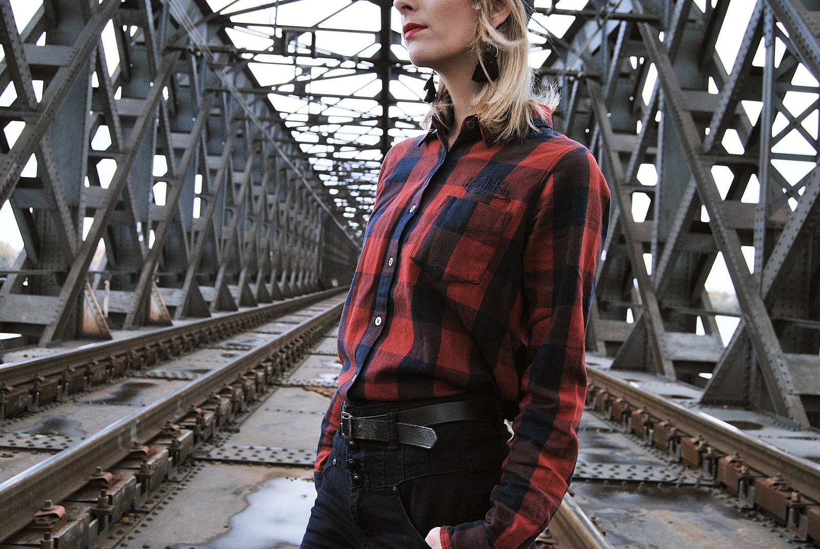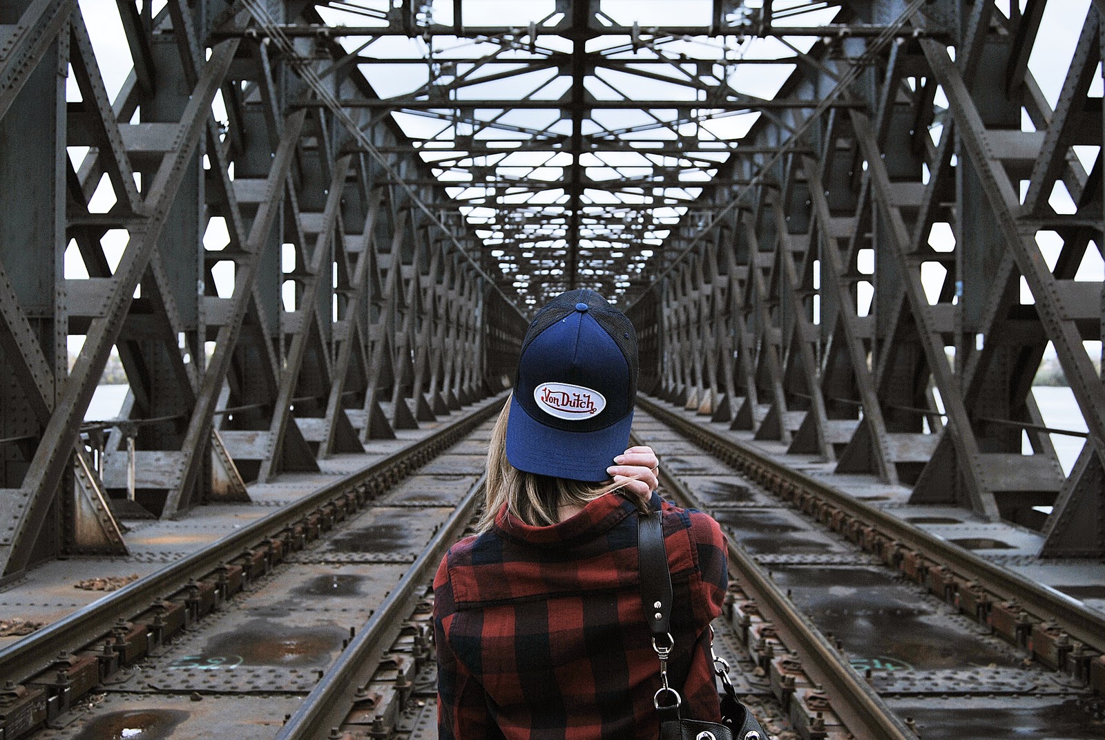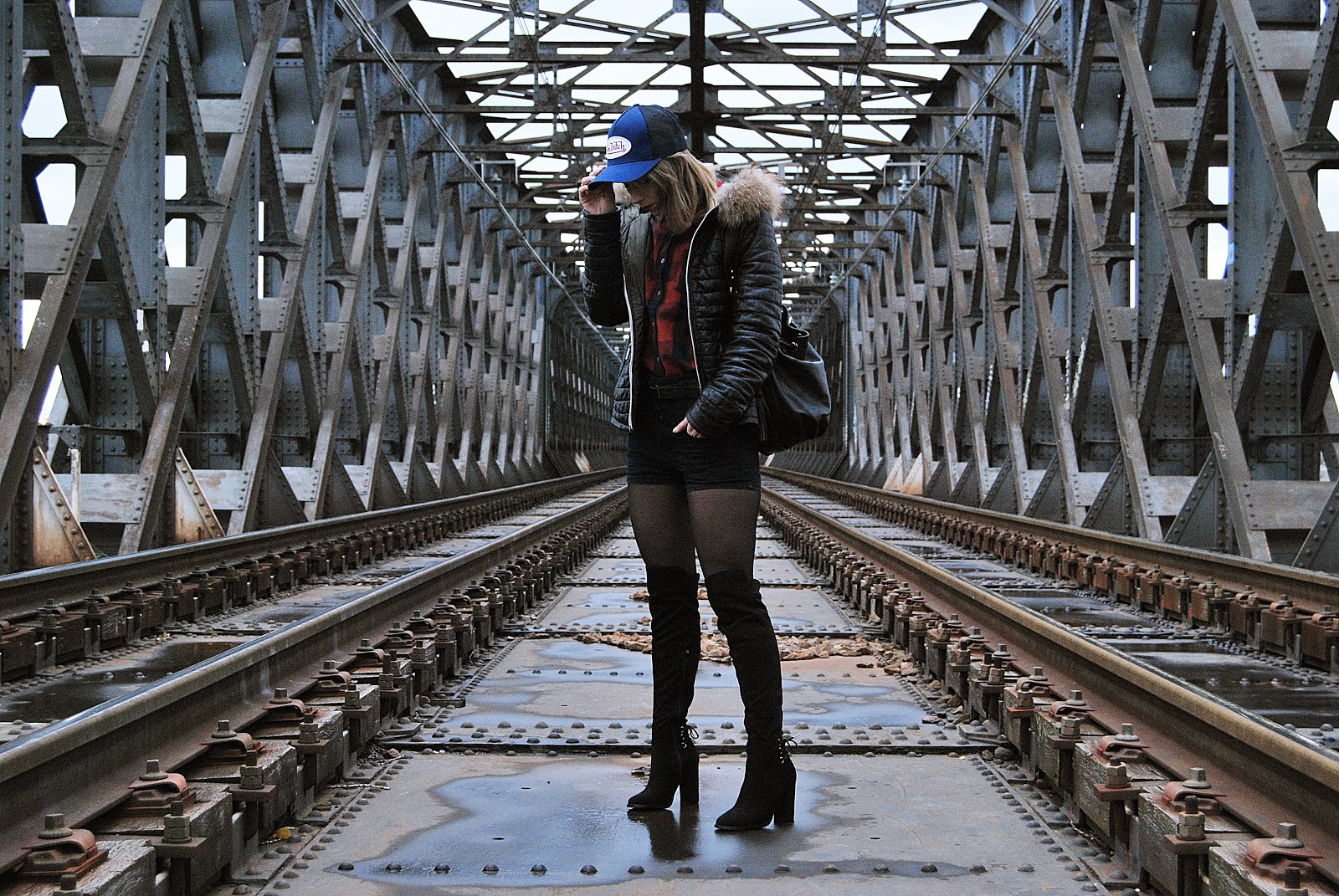 # Hello les amis ! Aujourd’hui on se retrouve pour un article qui me tiens particulièrement à cœur puisqu’il s’agit d’un LOOK en VON DUTCH, une marque qui à bercée ma jeunesse! Lancée dans les années 2000 par Christian Audigier. Avignonnais d’origine , il part s’installer à Los Angeles et devient très vite l’ami des stars. Il se fait connaître en utilisant la technique celebrity wear : il offre casquettes et tee-shirts à l’effigie de sa marque dans sa boutique de Melrose Avenue et paye les paparazzis pour photographier des stars comme Britney Spears, Justin Timberlake , Michael Jackson ou Madonna avec ses produits. Cette publicité fait sa réussite. Décédé en Juillet 2015 c’est aujourd’hui la sœur de Christian qui signe le retour de la marque, pour notre plus grand bonheur ! Von Dutch revient sur le devant de la scène avec son accessoire n°1: la casquette ! Son côté vintage rappelle des souvenirs d’enfance aux « Born in the 90’s » et son look a su nous conquérir ! Désormais la casquette s’affirme et s’affiche même sur les plus grands défilés ! Je suis donc très fière et heureuse de représenter la marque pour son grand retour ! A cette occasion je vous ai concocté une tenue Street-Chic avec une chemise à carreaux de la marque, un short en jeans et des cuissardes. Avec Clément (à la photo) nous avons choisis un vieux pont de chemin de fer pour aller shooter, et je trouve le rendu vraiment canon , pas vous ? Vous aimez ? J’attend vos avis et commentaires, à très vite pour un look en duo !! 💬