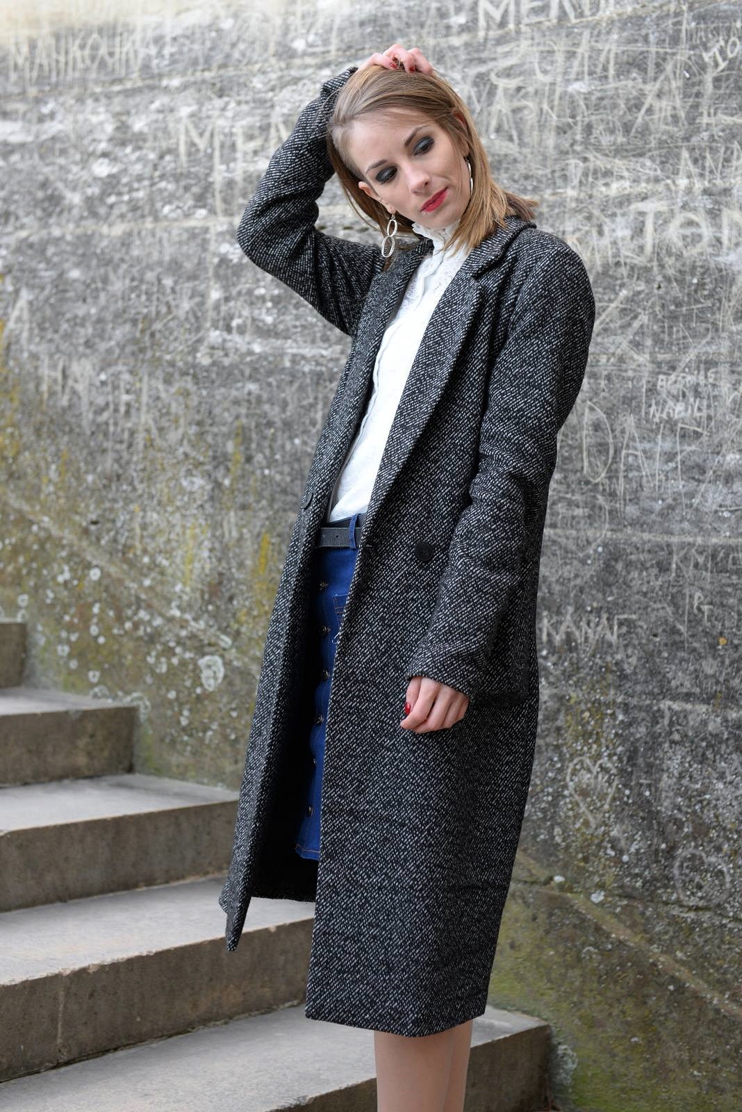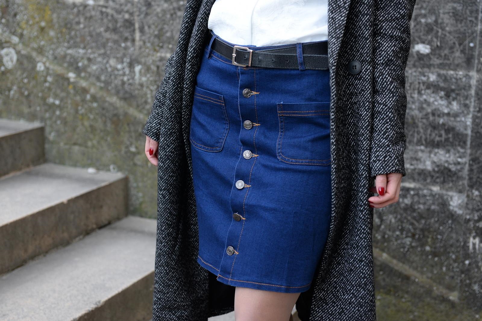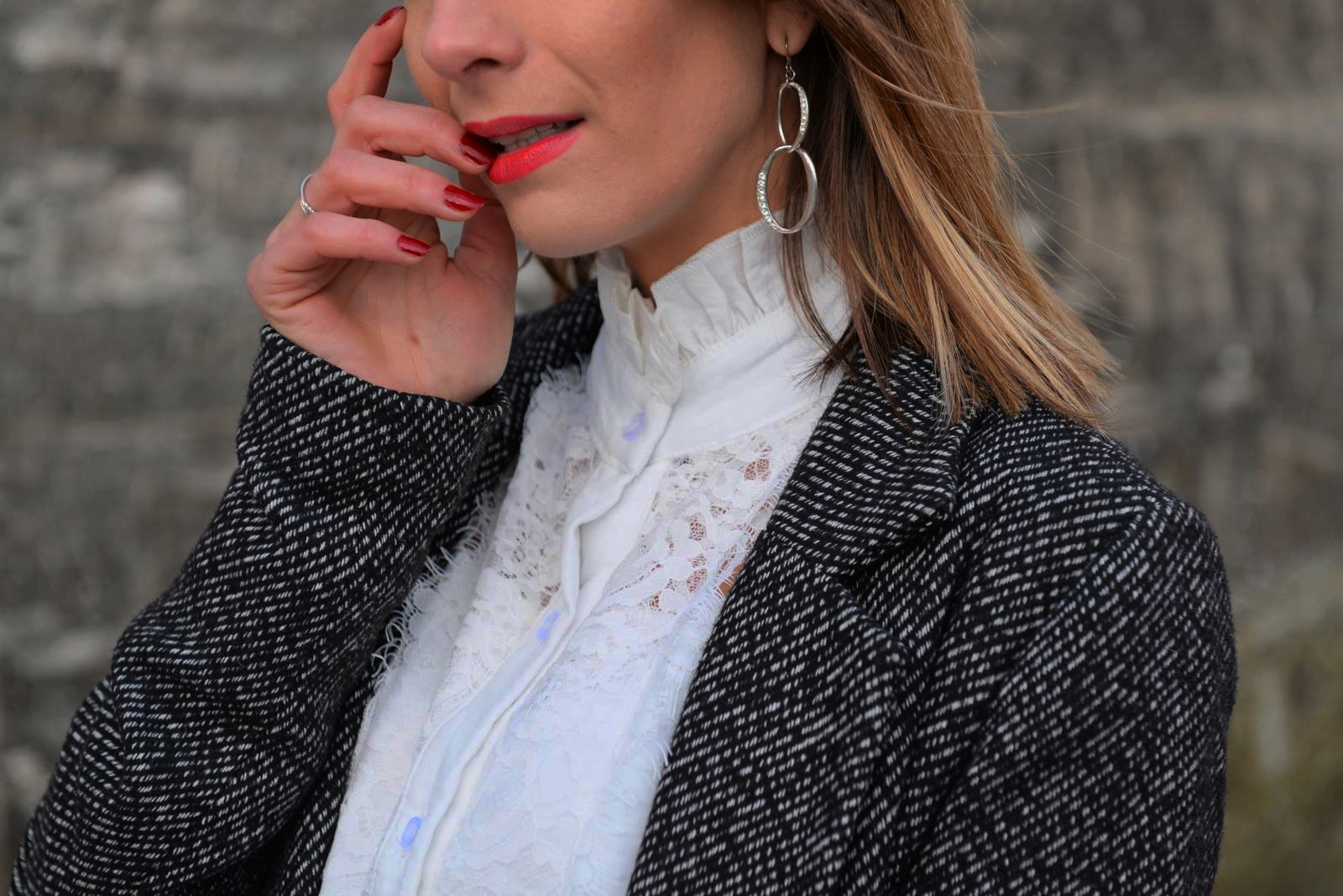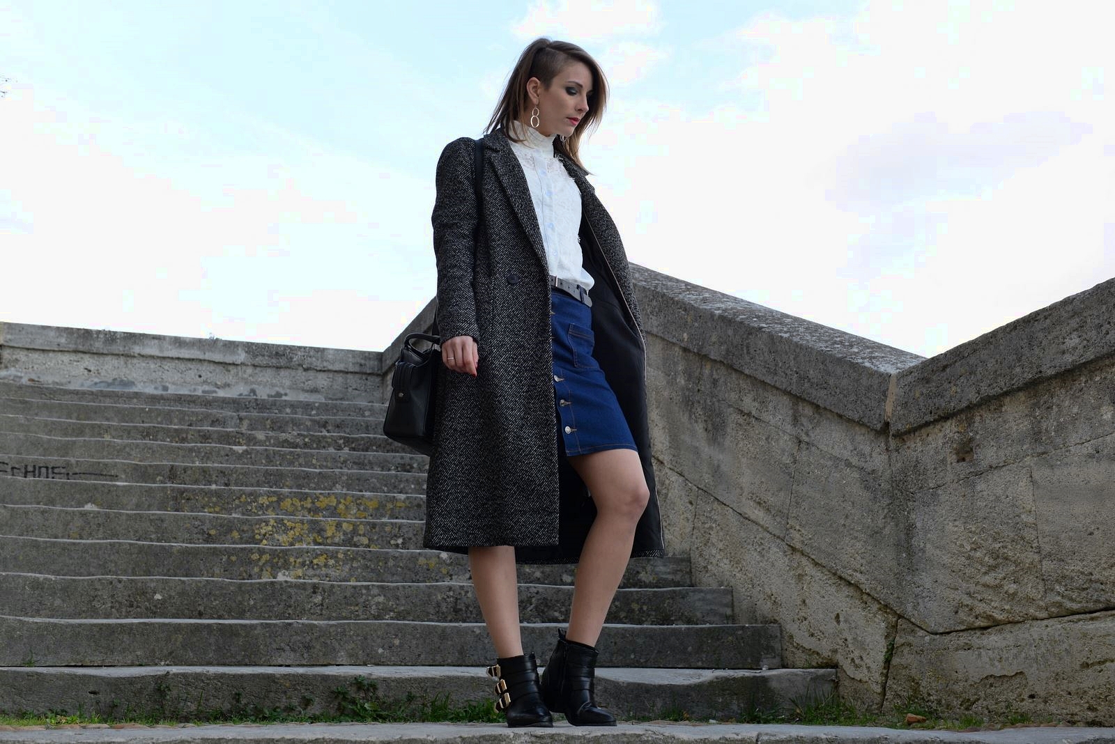 # Saaaalut c’est encore moi avec un nouveau LOOK et avec mon ami Laurent Perroux Ă la photo , on ne change pas une Ă©quipe qui gagne !! C’est un nouveau coup de foudre que je vous prĂ©sente aujourdâhui, mon manteau long dĂ©nichĂ© chez Vero Moda! Alors pour la petite histoire , c’est une piĂšce que j’avais repĂ©rĂ© il y a quelques mois dĂ©jĂ , Ă l’Ă©poque oĂč je bossais la bas (pour celle qui me suivent depuis un moment Ă prĂ©sent ) et bref, jâĂ©tais tomber amoureuse au premier regard, mais mon compte en banque tirait un peu la gueule. Puis lĂ , en passant voir les copines au magasin, que vois-je ? Mon manteau, lĂ devant moi, le dernier et soldĂ© Ă -50% … Vous connaissez la suite hein, je suis repartie avec illico presto , sans mĂȘme prendre le temps de rĂ©flĂ©chir, de toute façon Ă quoi bon rĂ©flĂ©chir dans un cas pareil ?? Il est tellement classe , mais classe ce manteau, j’en suis dingue! hahaha !! PASSONS ! Pour ma tenue du jour, je vous prĂ©sente une petite jupe en jeans Ă boutons , un excellent basique que je n’avais pas encore dans mon placard, accompagnĂ© d’un chemisier en dentelle hyper canon et original avec son col montant, dĂ©nichĂ© chez MODE IN ELO, un petit E-shop vraiment sympa que je viens de dĂ©couvrir et avec qui je ferais rĂ©guliĂšrement des partenariats . On termine avec mes bottines Ă brides que je ne vous prĂ©sente plus, et ça donne un petit look sympa mais selon moi mĂ©ga efficace vous ne trouvez pas ? VOUS AIMEZ ??? JâespĂšre et je vous invite Ă commenter !! Des bises les amis, et Ă trééééés vite sur le blog !!! đđ