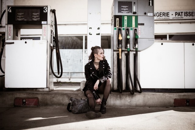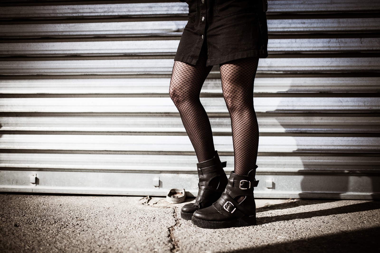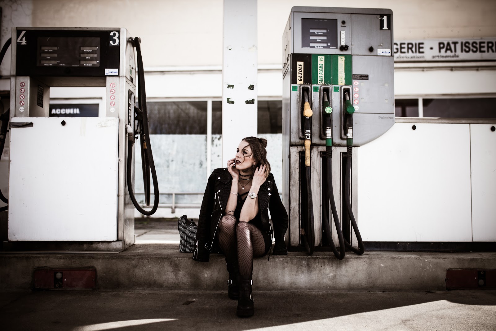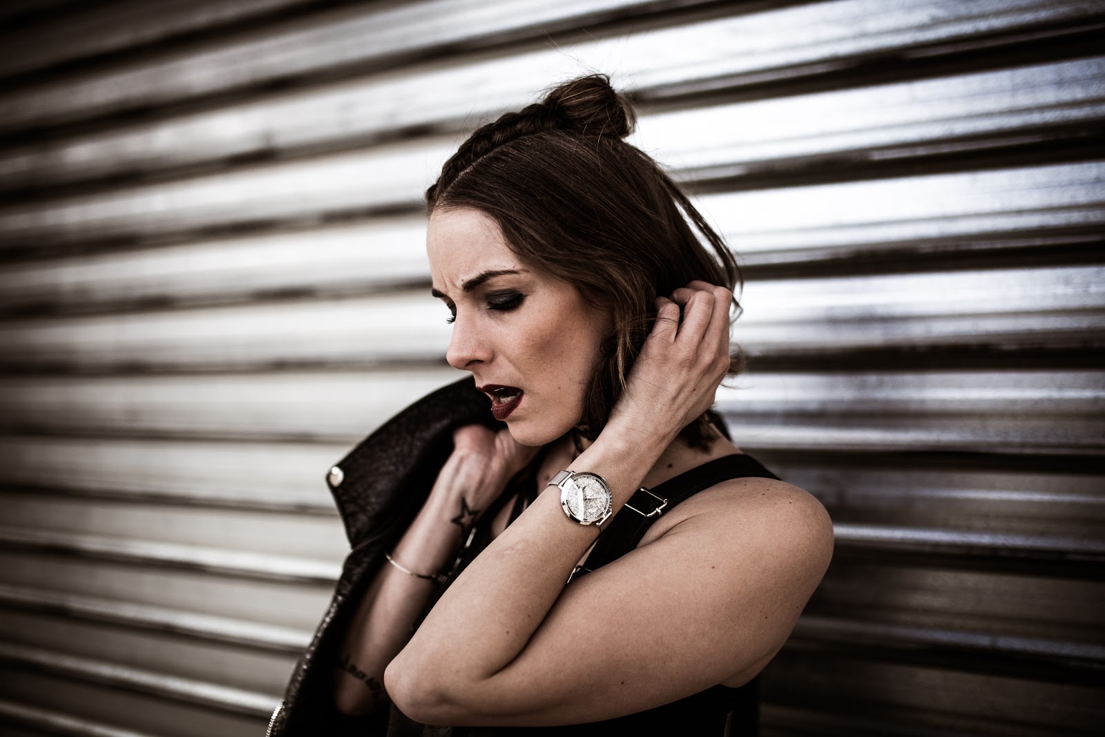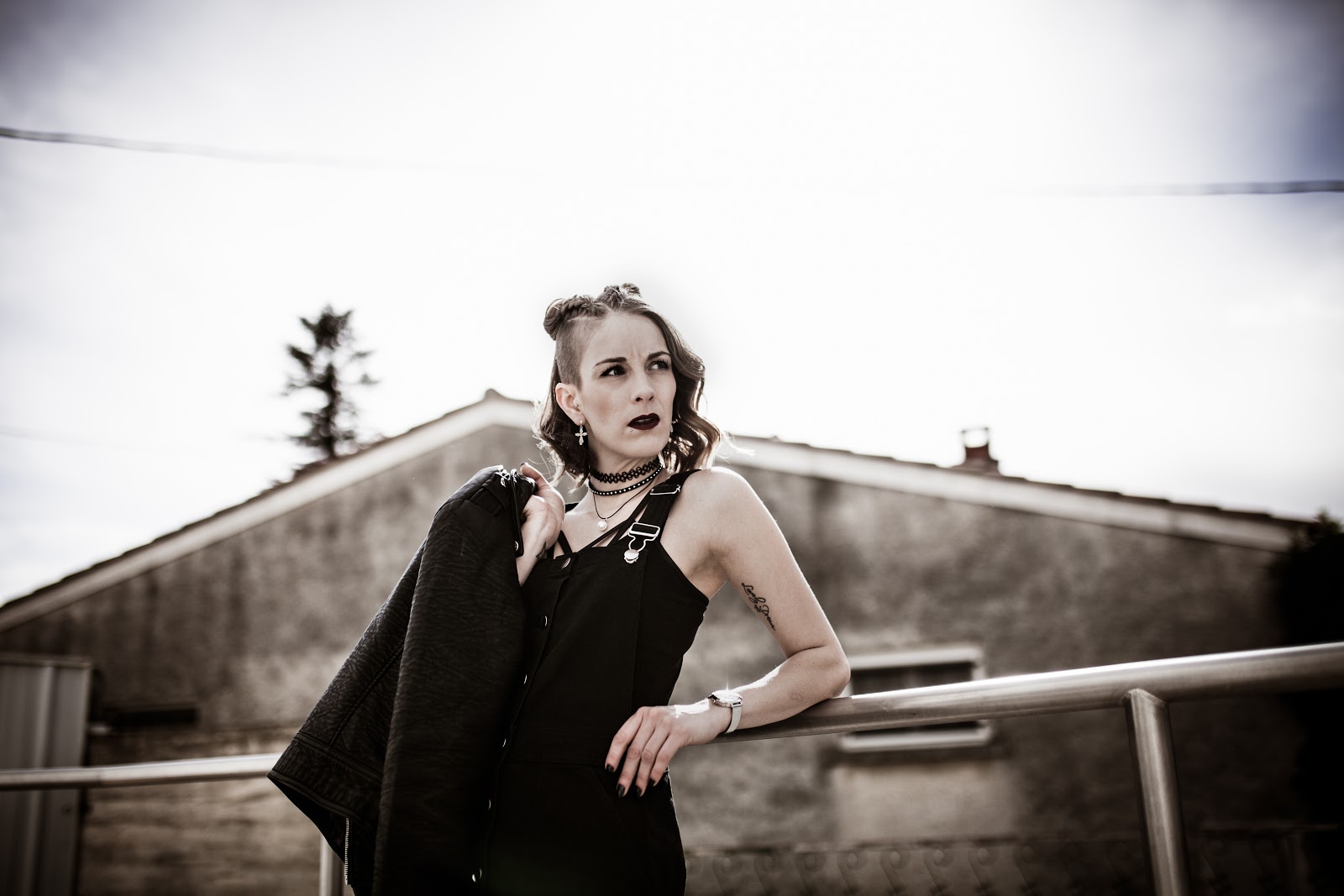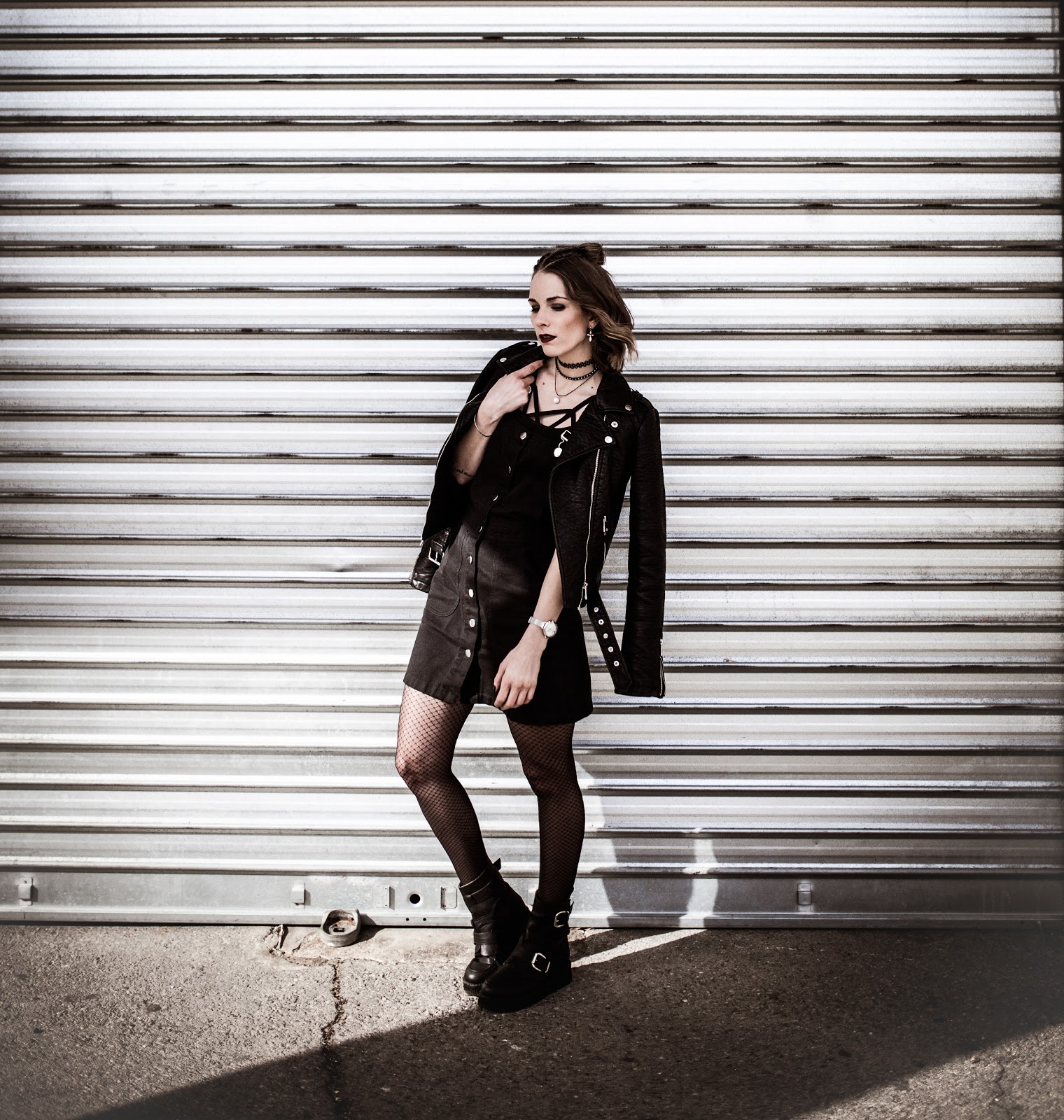 # Hello les amis !! Ce matin je suis JOIE ! Je reviens avec un nouveau LOOK , une tenue d’inspiration grunge/rock que j’adore et qui me tenait totalement à cœur de vous présenter !! C’est un style que j’adore et que je porterais tous les jours si je le pouvais, mais bon, apparemment ça fait un peu « trop » pour aller bosser, et les regards ne sont pas toujours sympathiques quand je me balade comme ça en ville. Que voulez-vous, les gens sont c***, je ne sais pas si c’est les boots, le rouge à lèvre foncé ou les résilles mais ça ne plais pas toujours !! Ceci dis, je ne sais pas si vous auriez osé mais moi, c’est le look que j’aurais choisi si j’avais pu aller à la Fashion-Week en ce moment même sur Paris ! Parfois, il faut savoir se démarquer !! Enfin bref, pas de F-W pour moi cette année, je n’ai pas pu me déplacer ! Côté photos, j’ai fait une superbe rencontre cette semaine, il s’agit de Florence Demeusy (son site ICI ) , avec qui j’ai shooté ce look ! C’est elle qui m’a contacté par hasard suite à un post sur FB où je cherchais un(e) photographe, et ce fut une très bonne surprise, j’adore son boulot et son univers photographique ! Ce matin là, j’avais également RDV avec Aurélie du salon de coiffure Senso, au pontet, qui comme vous le savez me coiffe régulièrement pour mes shoots. Ajoutez à cela une bonne dose de bonne humeur et ça donne une belle équipe qui déchire !! Côté look (quand même) j’ai déniché cette robe-salopette chez H&M, un vrai coup de cœur ! Mon perfecto, mes boots façon creepers (déjà vues ICI ), une paire de collants résilles et côté bijoux et accessoires, on découvre discrètement un harnais sous mon débardeur et mes colliers chockers . Pour terminer zoom sur … ma montre !!! C’est aussi un accessoire incontournable de cette tenue qu’il faut que je vous présente! J’ai été récemment contacté par la marque Pierre Lannier et j’ai adoré leurs montres! J’en ai choisi une de la collection Élégance Cristal, magnifique avec ses cristaux de Swarovski et son look totalement chic et moderne ! Je l’adore! Alors , vous aimez ?? Ça vous plairais que je vous présente des looks un peu plus alternatifs sur le blog ? J’attends vivement vos avis et réactions sur cette tenue!! A très vite les filles !! 💋
