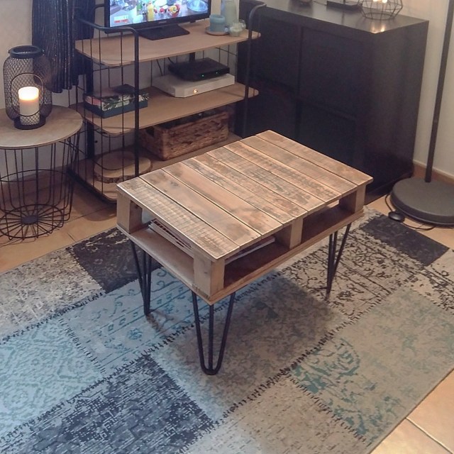 # Hello les amis! On se retrouve aujourd’hui avec un article DÉCO !! J’ai pleins de nouveautés à vous montrer à commencer par ma table basse en palette que je vous ai déjà montré dernièrement sur Snapchat ou Instagram. Je vous ai longuement parlé de mon amour pour les meubles en palettes (et c’est pas terminé) , il fallait donc que je vous présente la mienne, personnalisée avec des pieds RIPATON. L’atelier Ripaton est une entreprise Montpelliéraine spécialisé dans la fabrication artisanale de pied de meubles en épingle, et en acier. J’ai totalement craqué sur ce concept et j’étais ravie quand ils m’ont proposé de m’en envoyé deux paires! Chez Ripaton, tout est assemblé, soudé, traité et emballé au sein de l’atelier, afin de nous proposer un prix accessible. Il existe de nombreux modèles, tailles et couleurs différentes et c’est sure le modèle « costaud » que j’ai jeté mon dévolu! L’assemblage ensuite est hyper simple, je vous avais fait une vidéo sur snap avec Clément, souvenez-vous ! Il suffit de 4 vis , d’une visseuse et le tour est jouer, vous pouvez ainsi customiser n’importe quel meuble afin de lui donner un nouveau look, une nouvelle vie !! Ensuite, dernier achat en date, mes deux tabourets industriel, trouvé à 25€ chacun chez Babou ! Une véritable affaire et la qualité est top !! Je trouve que ça à quand même plus de classe que les deux tabourets Ikea que j’avais avant! Bon , et pour le côté Ethnique-Chic dont je vous parlais ICI , j’ai craqué sur cet énorme macramé mural chez Maison du monde . Le plus petit , ultra-mignon au dessus du cactus vient de chez Tati, tout comme mon panier en osier, le miroir en rotin et le macramé suspendu en l’air . Bref, ma déco à bien pris forme et je suis ravie, mon petit cocon rend enfin comme je le voulais, c’est beaaaau , vous trouvez pas ? Je file les amis, j’attends vos petits mots et commentaires !!!!