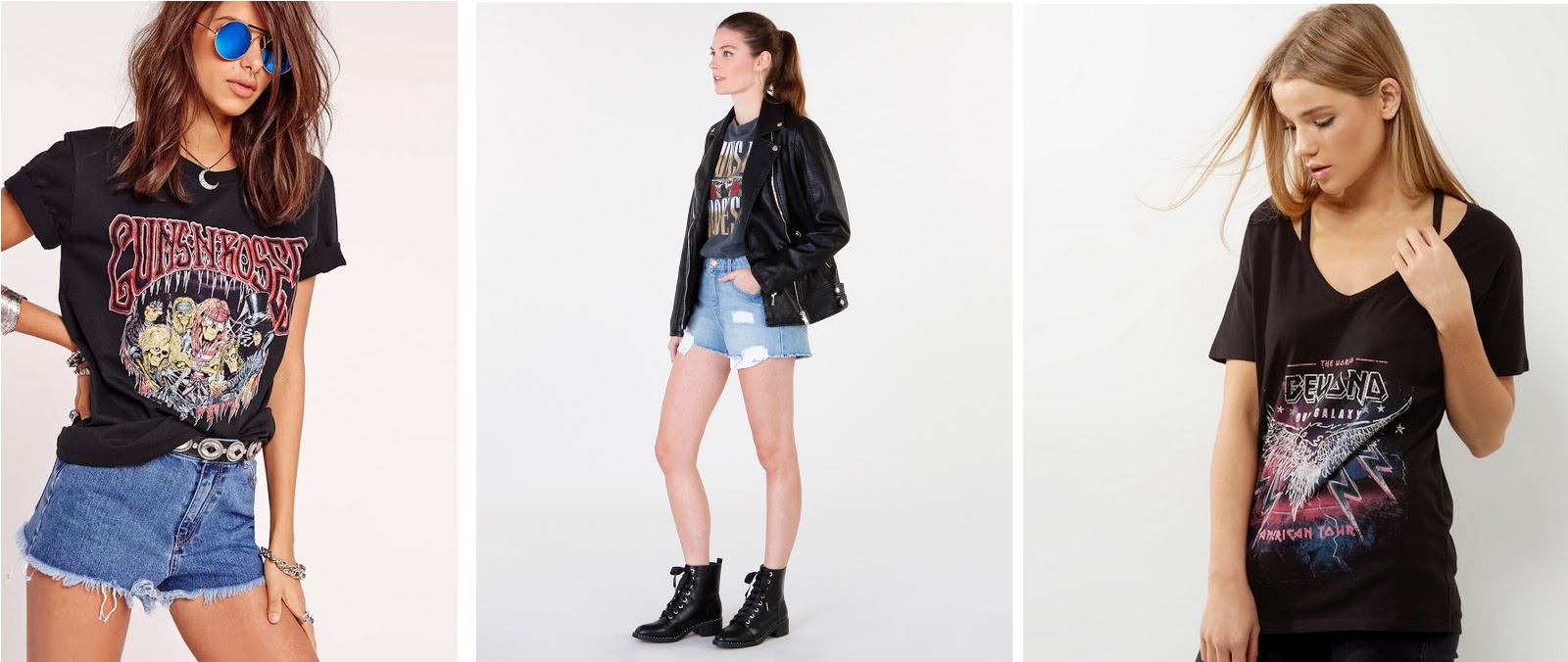 8 / Les Tee-shirts Rock : C’est sympa et franchement canon, moi j’adore! Il est donc temps d’afficher ses préférences et de montrer son côté rock n roll !!! Déchiré, ou encore très underground, Il est l’atout d’un look plutôt simple.