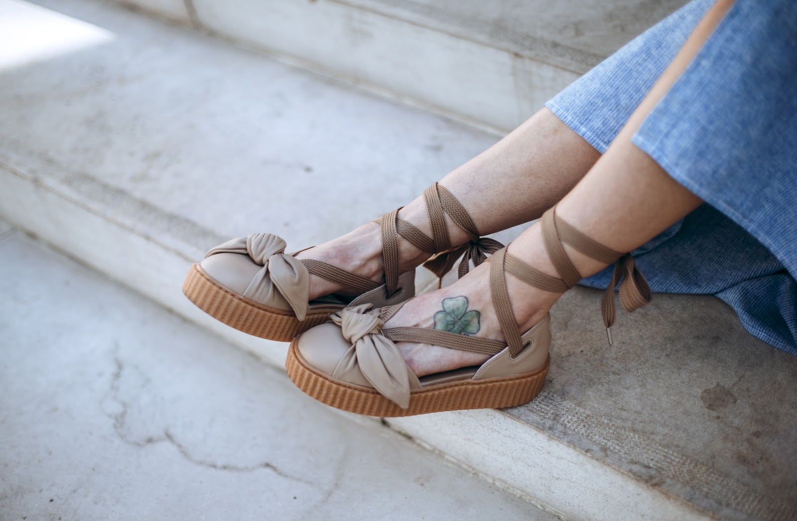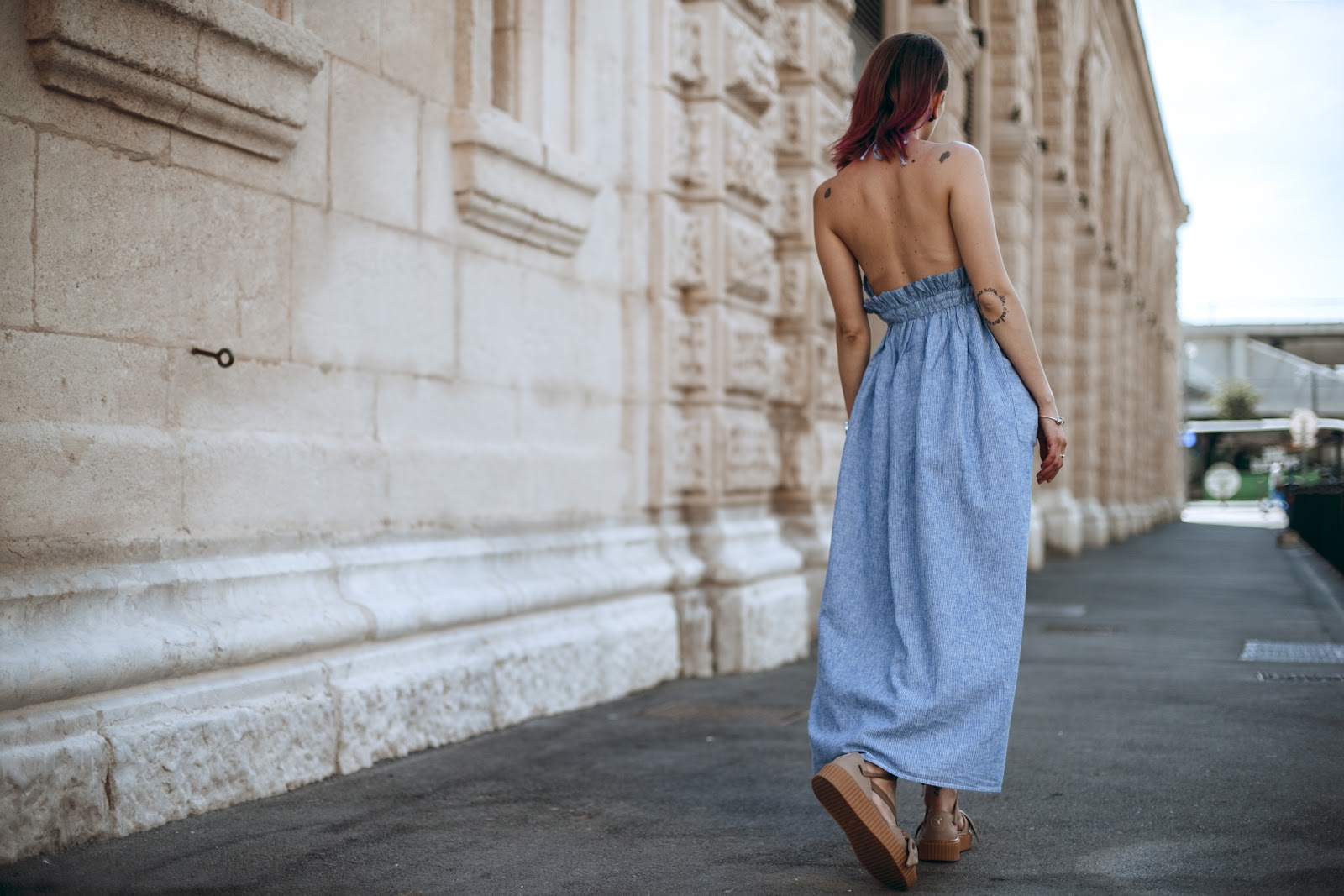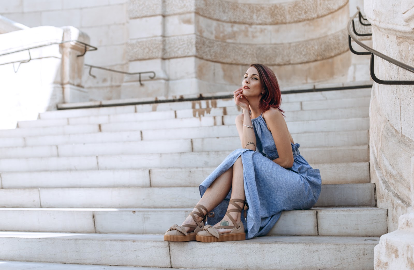 # Hey Friends!! Ce matin je reviens pour partager avec vous mon deuxième article shooté avec Sébastien Lugand sur Marseille, au pied de la cathédrale de la Major, pour le SLASH STORE !!! Vous avez beaucoup aimé le premier la semaine dernière et nous sommes ravi de tous vos retours !! Pour ce second LOOK, c’est les Puma Creeper x Fenti x Rihanna que nous voulions mettre en avant !!! Des petites bombes atomiques , confortables et canon à souhait !! Parfaitement en accord avec cette robe longue en Lin façon Denim que je vous avais montré il y a quelques semaines sur SNAP ( 👻 cha.martinet) lors de mes essayages chez Mango !! Je craque totalement sur son dos nue hyper échancré, et le col américain, c’est féminin et sexy à souhait !! En Bref, j’espère que vous aimerez cette tenue décontracté , que ce soit à la plage ou en ville !! 🌞