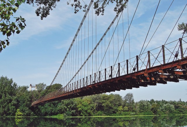 et à quelques mètres de là , en promenant …. Le Pont suspendu des Arméniers , laissé à l’abandon ici depuis 1975 . Impressionnant, à découvrir absolument !!
