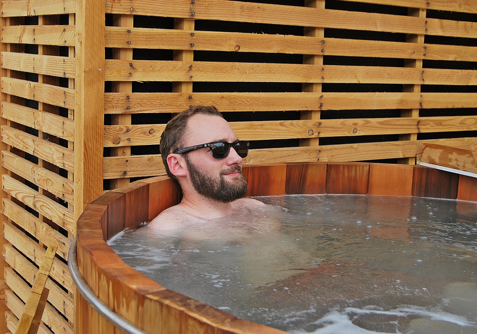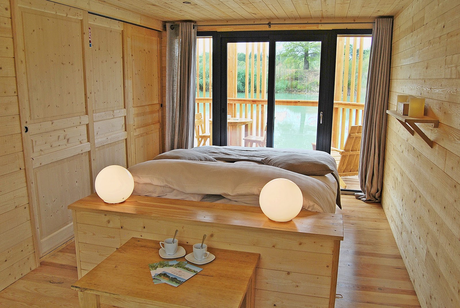 On a testé… La cabane flottante duo/spa « Aquarelle« . Comme tout droit sortie d’un rêve ! Un vrai petit nid d’amour, avec un bain nordique à 38 degrés , avec plein de bulles à l’intérieur, si ça c’est pas magique !! Ce spa face à l’étang ajoute un réel plus à l’ambiance du séjour, une grosse dose de romantisme et de bien-être ! Dans la cabane , on à tout ce qu’il faut : un immense lit douillet, une petite salle de bain avec WC, un coin repos, une terrasse. Les draps et serviettes de bain sont prévus également.