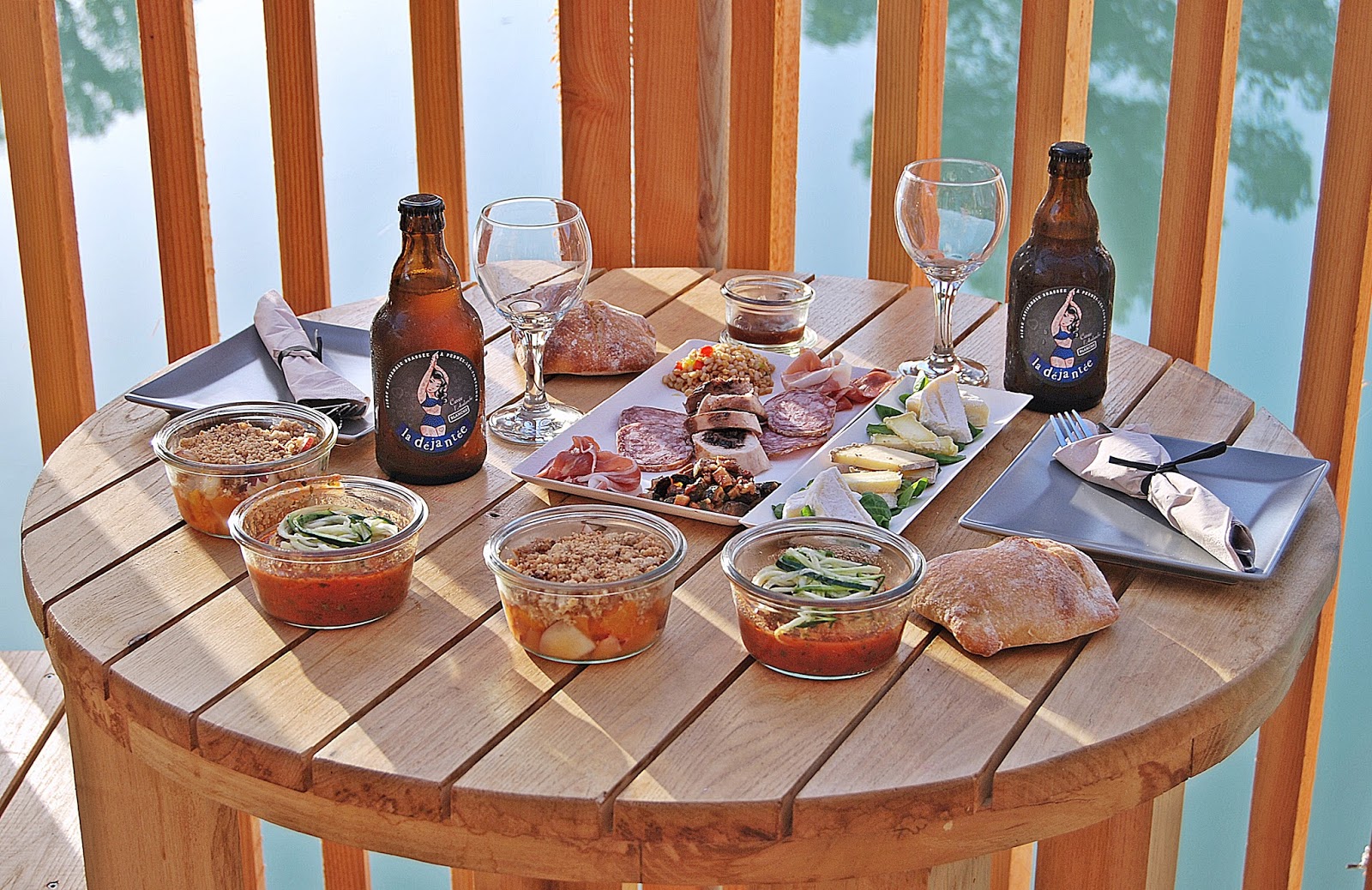 Les paniers-repas sont livrés sur place vers 19h30. Au menu des produits locaux (charcuterie, fromages, gratin de courgettes à la provençale, crumble de fruits frais …. et dégustation de bière de la région et/ou de vin. Nous sommes à Chateauneuf-du-Pape au coeur des vignes , autant en profiter !