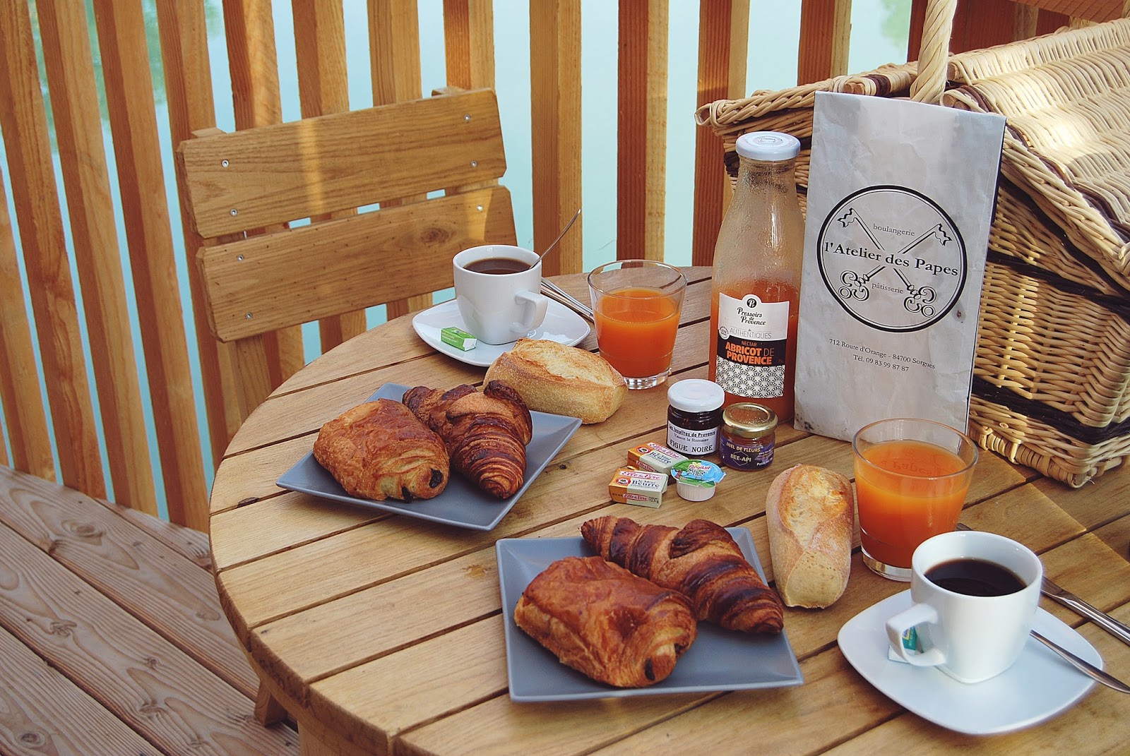 La nuit tombe sur le domaine des grands-cépages … Ici, pas de télévision, ni de wifi … nous sommes ici pour nous déconnecter et converser avec la faune …. C’est aussi ça les joies de la nature! Si une nuit en cabane est dépaysante, c’est parce qu’elle sollicite les cinq sens ! Réveillée par la lumière du jour et le chant des oiseaux, les panier petit déjeuners sont livrés à partir de 8h00 : Café, jus de fruit, confitures, miel, le pain et les viennoiseries de la meilleure boulangerie de la ville… de quoi commencer la journée en beauté! Je prends mon petit-déjeuner en tête à tête avec la nature. Je me mets à respirer le parfum des chênes et à redécouvrir la rugosité de son écorce. Déconnectée du monde moderne, je suis une autre personne!