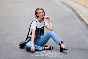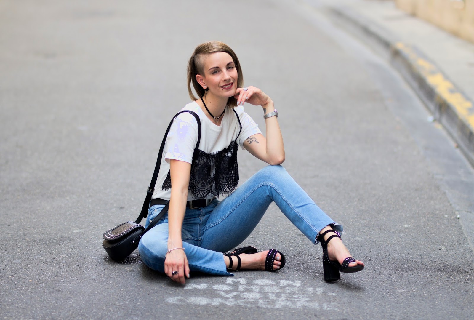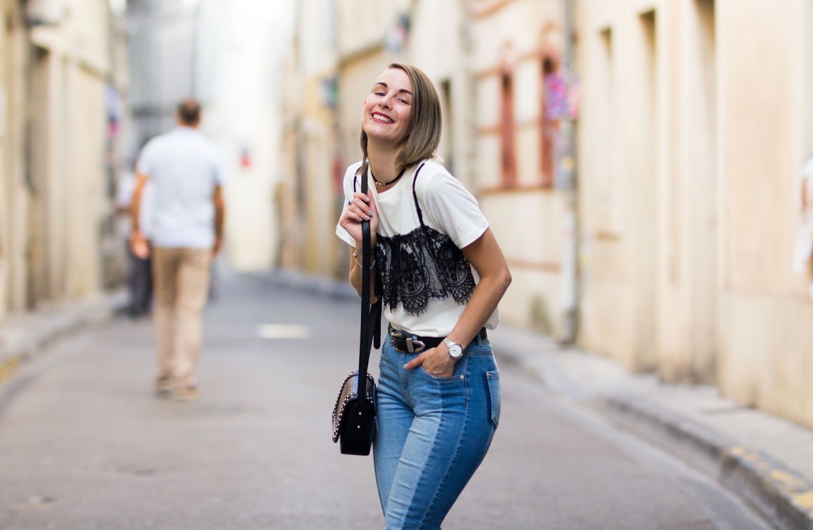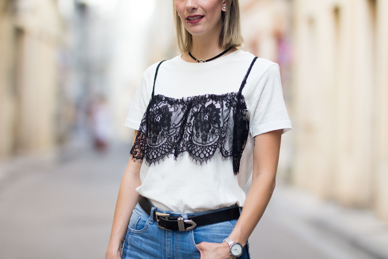 # Hey coucou les filles! Me voilà de retour ce matin avec une nouvelle tenue shooté la semaine dernière avec Guillaume sur Avignon . J’ai craqué dernièrement sur ce top effet nuisette en dentelle, un jeu de superposition tendance 90′ plutôt sympa je trouve ! Je l’ai associé à l’un de mes jeans bicolore préféré et à mes sandales cloutées pour un total look Pimkie qui me ressemble totalement ! J’espère que vous aimerez, j’attends comme toujours vos avis et petits mots !! Bonne journée les amis , et à très vite sur le blog !! ENJOY !! 💋💋