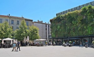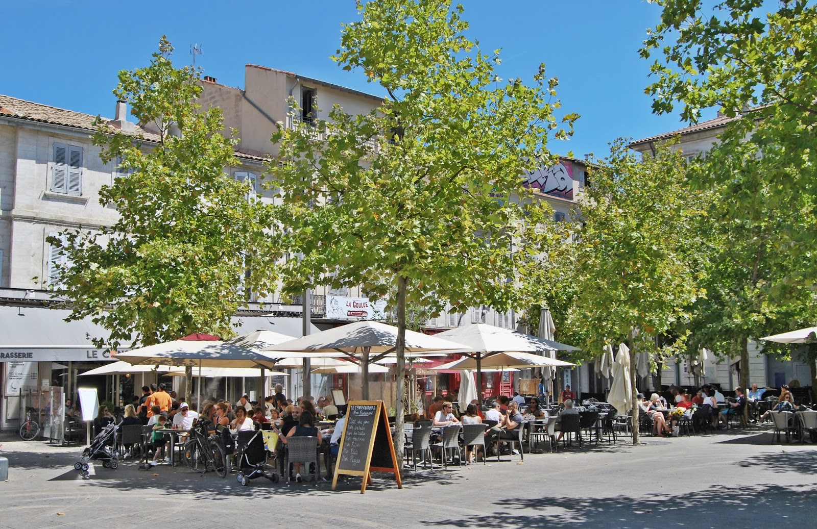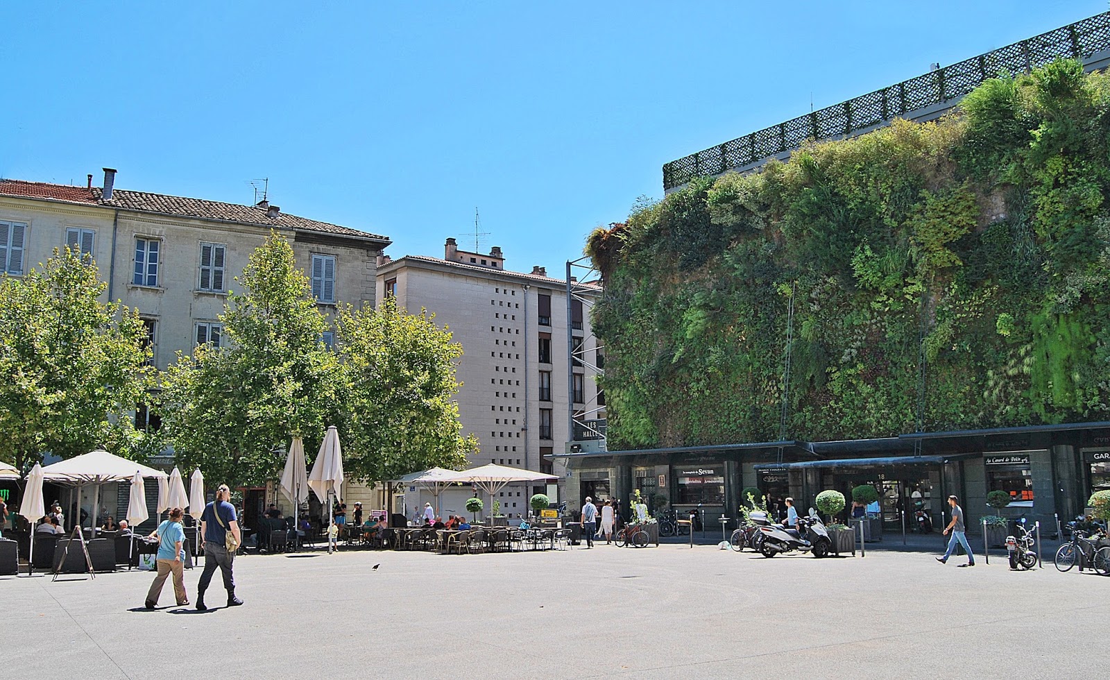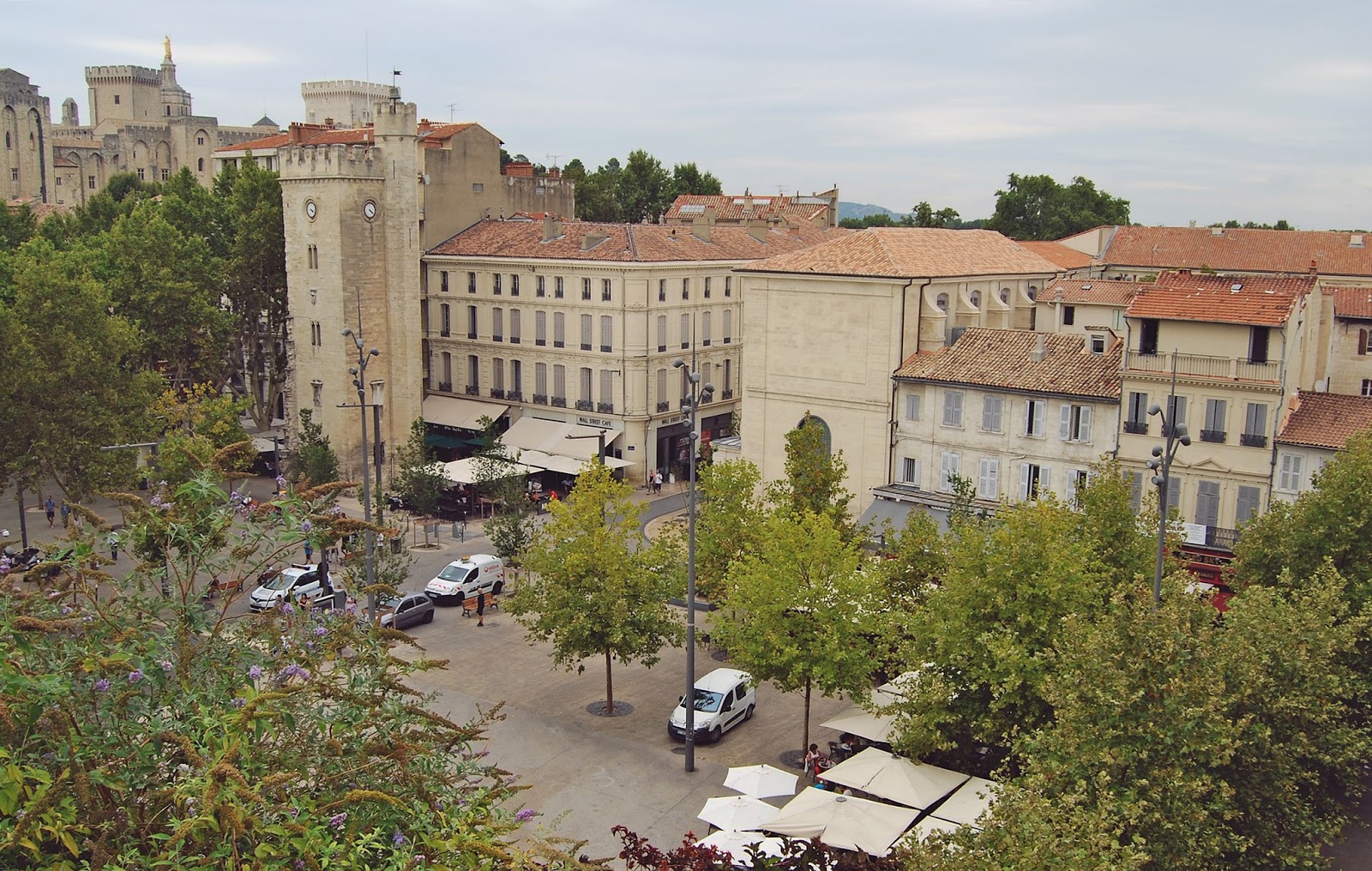 4 / Les différentes places de la ville où il fait bon boire un verre ou manger un bout : La Place de l’Horloge où trône la mairie et l’Opera de la ville, la Place pie qui est la place la plus populaire de la ville avec ses halles couverts à découvrir absolument ( A l’intérieur, un vrai spectacle avec 40 commerçants proposent des étals de toutes les couleurs avec des fruits et légumes brillants bien alignés, des pains de campagne, des olives vertes et noires, au thym, à l’ail , fromages, volailles, pâtisseries, épicerie fine, produits bio etc … Bref le bonheur à la provençale , on y retrouve les meilleurs produits de la ville ) La façade est recouverte d’un mur végétal de 600m², à voir aussi . On continu avec la place des Corps-saint , la place Crillon où se trouve l’Hôtel d’Europe , la place des Carmes …