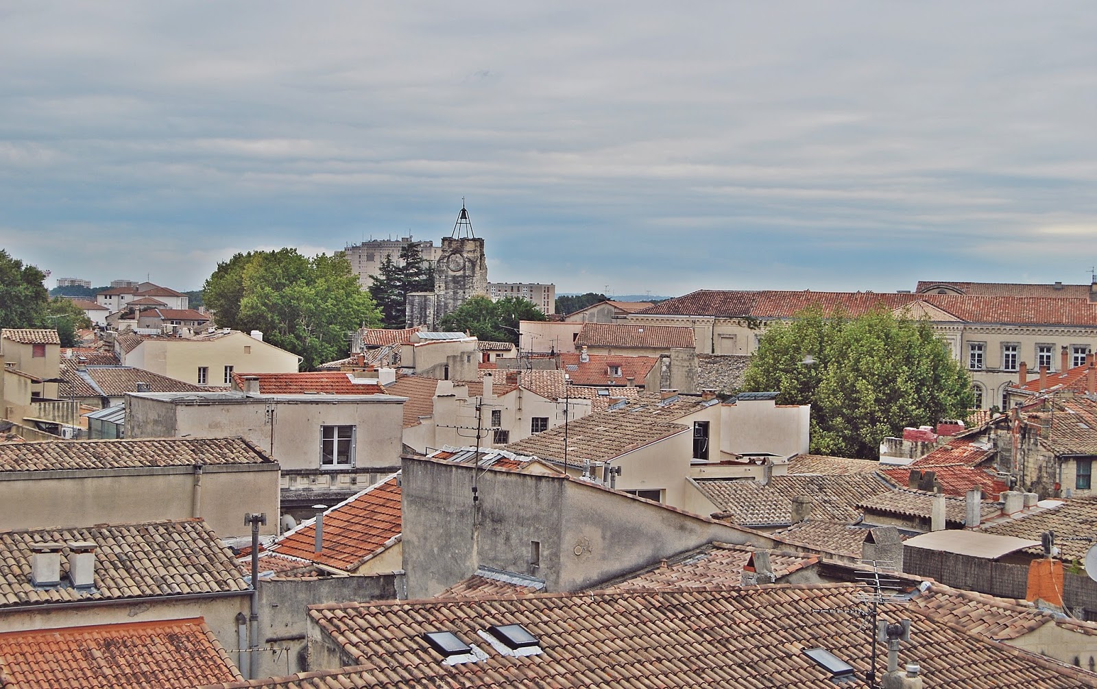 Vue sur les toits d’Avignon depuis le haut du parking des Halles.