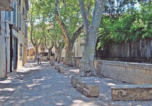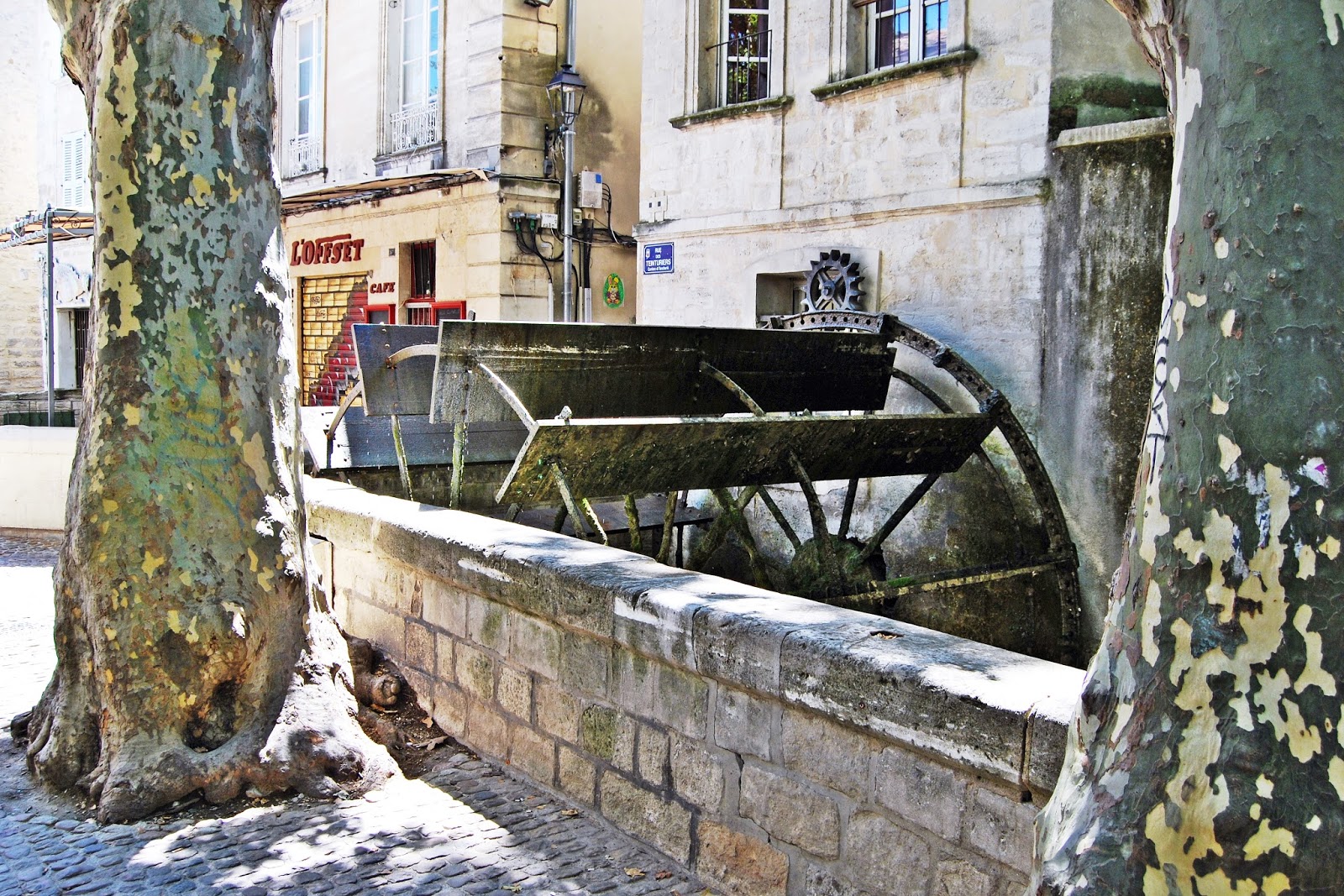 3 / Les ruelles pavées de la ville : ma préféré, la Rue des Teinturiers (ou rue des roues), encore entiérement pavées. Ses veilles roues à aubes servaient à l »époque à fournir l’énergie aux moulins et aux filatures de soie de la rue. L’eau de la Sorgues ( dirigée par le canal de Vaucluse) était utilisées pour laver et rincer les tissus par les teinturiers. Vous trouverez aussi dans cette rue la maison du IV de Chiffre, la maison de Jean-Henri Fabre, la chapelle des Pénitents Gris et le clocher du couvent des cordeliers.