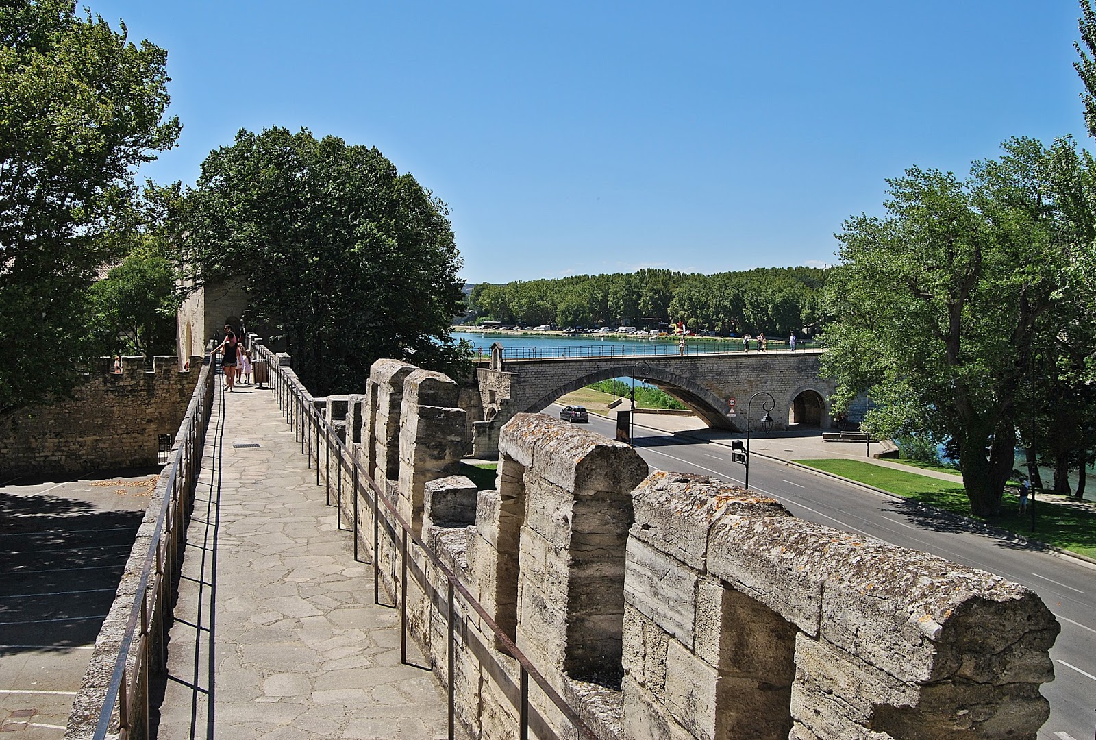 1/ Le Palais des Papes : Construit pour héberger et protéger les papes du 14e siècle en France, lorsque Rome était déchirée par des querelles politiques, ce palais est l’un des plus grands de style gothique d’Europe (sa taille fait celle de quatre cathédrales ) . Il est vraiment impressionnant et à voir absolument !! Il compte plus de 25 salles et bien que nombre d’entre elles aient été dépouillées de leur mobilier, il reste beaucoup à voir, même si certaines sont généralement fermées au public… Terminez bien-sur votre découverte par le Rocher des Doms : Ce jardin de 2,8 hectares domine la ville et surplombe le Rhône. Le panorama est magnifique et vous permettra de faire de magnifiques photos. Il est agréable de s’y promener et d’y pic-niquer le dimanche à l’ombre des arbres. L’accès au jardin se fait par la Place du Palais des Papes, depuis les rives du Rhône, ou encore par l’escalier Sainte Anne, à l’arrière du Palais des Papes. Le petit train touristique conduit également au jardin.