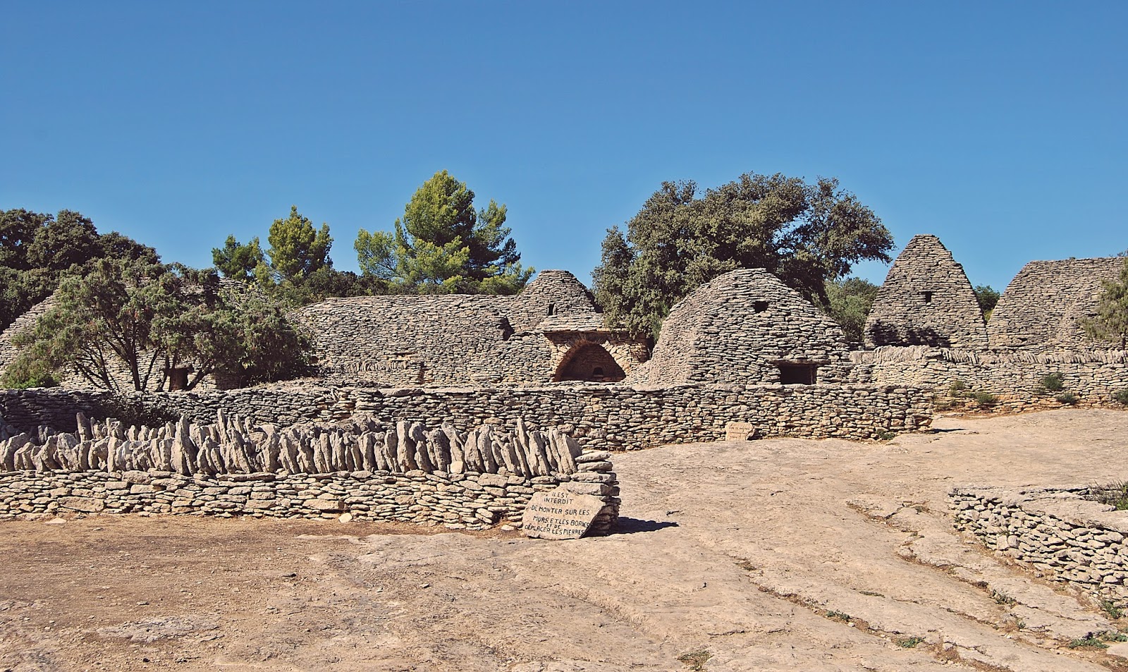 – Le Village des Bories (ou cabanes) juste à l’entrée de Gordes. Il s’agit d’un village en pierre sèche, classé au patrimoine historique et caractéristique de la région. On y retrouve des habitations, bergeries, fours, granges etc abandonnés là depuis le millieu du 19 e siècle. On doit leur redécouverte et leur sauvegarde à Pierre Viala, poète, écrivain qui arrive à Gordes dans les années 1960. ( 8 ans de travaux sans aucune aide financière, avec la précieuse collaboration d’excellents maçons de Gordes.) C’est aujourd’hui un des sites les plus visités du Vaucluse.
