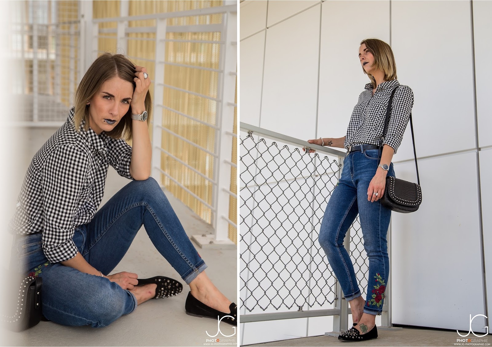 # Hello les chéries! J’espère que vous allez bien ?? Grosse semaine pour moi, entre le boulot, la préparation de l’expo de Clément, les shootings, les RDV pro et j’en passe, bref, je n’ai pas eu une seconde à moi ! Mais quand même, il fallait que je vous poste ce nouveau LOOK shooté avec mon pote Julien cette semaine !! J’ai craqué dernièrement sur cette chemise à carreaux chez Pimkie, j’adore totalement le message I’M NOT SORRY dans le dos !! Effet Garantie ! Je l’ai simplement associé à l’un de mes jeans chouchou  (déjà vu ICI ) , ma paire mocassins cloutées (vu ICI ) , mon petit sac (clouté aussi!!) vu ICI et pour terminer, j’ai testé le dernier LIQUID SUEDE METALLIC MATTE couleur noir et même si le résultat n’est pas trop mal en photo, je ne suis pas ultra-fan! La matière est trop liquide , et pas assez mat !! La couleur est évidement dingue, c’était un choix de ma part qui ne plaira pas à tout le monde mais je l’assume !! En tout cas, j’espère que vous aimerez ces photos, j’attends vos petits mots et avis, et vous dis, à très vite !! 💬 ENJOY !