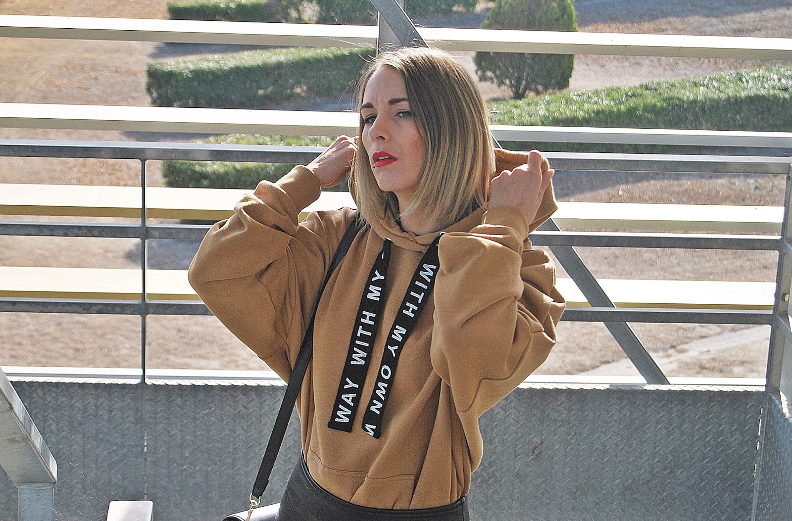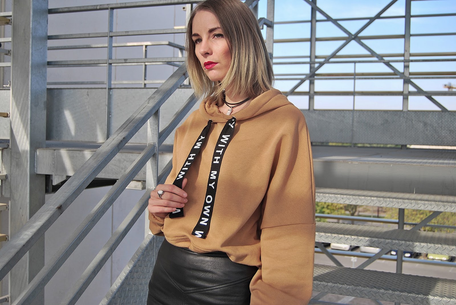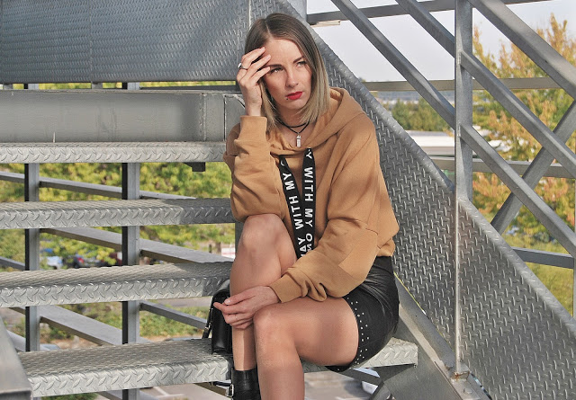 Hello les filles, comment allez vous ? Ce matin je vous retrouve sur le blog avec un nouveau LOOK Automnal !! (que je devais vous présenter depuis plus de quinze jours en passant ) Je suis tombé amoureuse de ce sweat oversize chez Pimkie ! La couleur, les cordons imprimés , tout, j’aime tout chez lui !! Le but étant quand même de garder un côté féminin, je l’ai associé à une jupe en simili avec Clous et œillets sur le bas, ma paire de boots cloutés, mon sac Karl et rien de plus !! J’espère que vous aimerez parce que pour ma part c’est une de mes tenue favorite du moment ! J’attend vos petits mots et avis et vous souhaite une bonne semaine !! ENJOY !!
