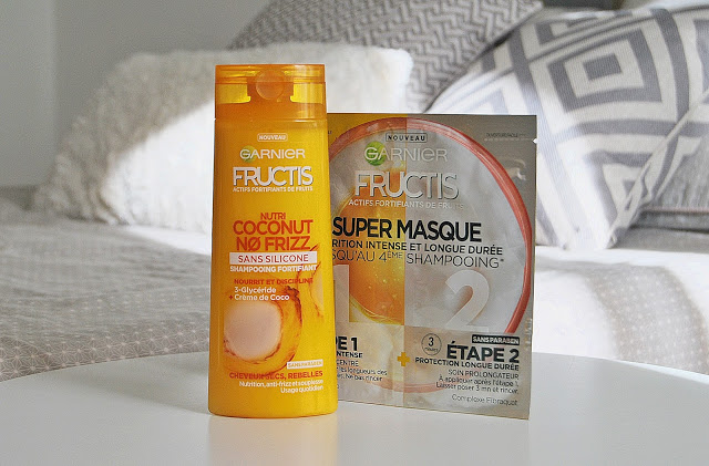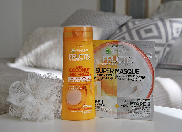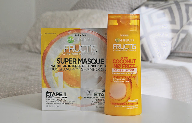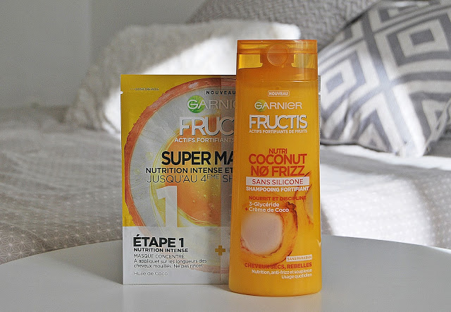 Hello  les filles! Ce matin on parle Beauté sur le blog !! J’ai reçu cette semaine deux nouveautés de la marque GARNIER, via la plateforme Hivency : Le Shampooing Fortifiant Nutri Coconut Nø Frizz et le Super Masque , un masque nutrition intense en deux étapes.  Le nouveau Fructis s’inspire de la tendance des cures detox à base de fruits pour leurs vertus fortifiants . Les formules sont toutes sans paraben et testées dermatologiquement. MES AVIS : Le Shampoing à la crème de coco et aux 3-glycérides nourrit intensément les cheveux et les enrobe de soin afin de les protéger contre l’humidité, pour une action anti-frizz. L’odeur est hyper agréable, vous vous en serez douté, la texture douce et agréable. Après cela, je m’attaque au Masque en deux étapes : Deux monodoses de 15ml à appliquer l’une après l’autre, un masque concentré et un soin  prolongateur. On les applique sans rinçage entre les deux, et on laisse poser 3 minutes avant de rincer. Le rinçage se fait rapidement et les cheveux se démêlent facilement. Je suis un peu moins fan du packaging, pas hyper pratique, surtout sous la douche, les mains mouillées, puis ça fait plus « échantillon » qu’autre chose . Mais quoi qu’il en soit, ce sont de très bons produits, j’en suis vraiment contente !! Mes cheveux sont doux et soyeux, et surtout ultra léger et discipliné ! C’est tout ce que je recherche, surtout depuis que j’ai les cheveux court au carré , strict ! Les prix : Le shampoing est à 3€30 , le masque à 2€20, à retrouver en grande surface. Et vous, connaissiez vous ces nouveautés, les avez vous tester ? J’attends vos petits mots, ENJOY  !!