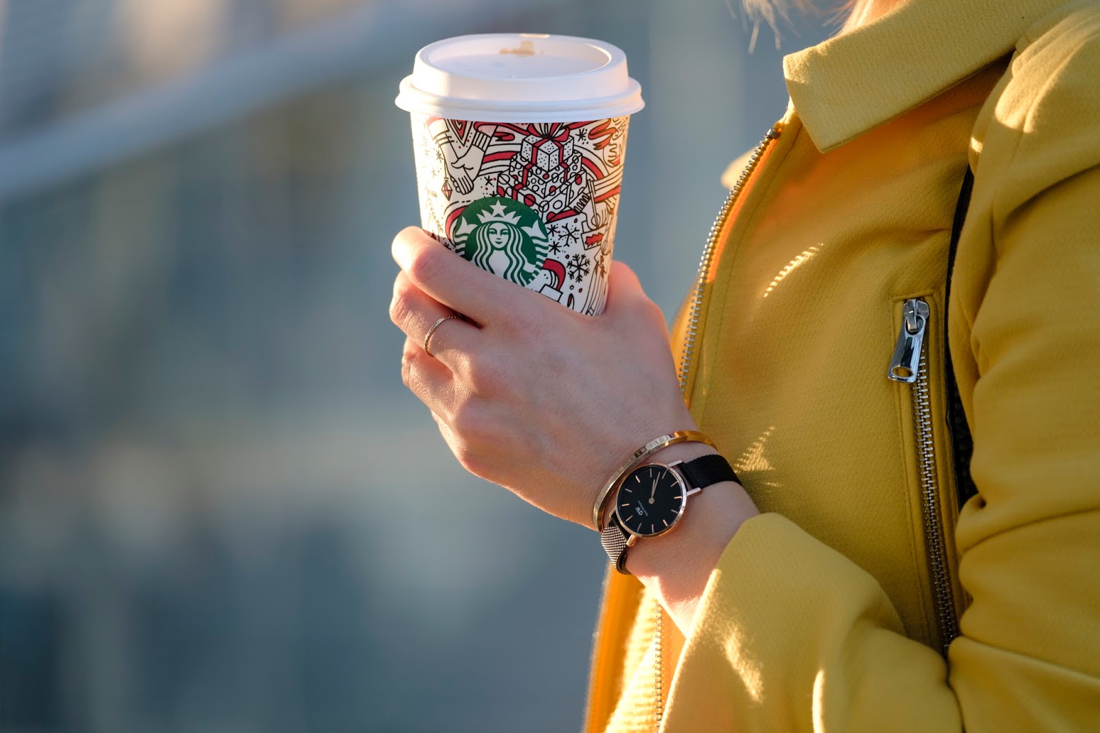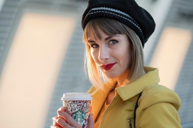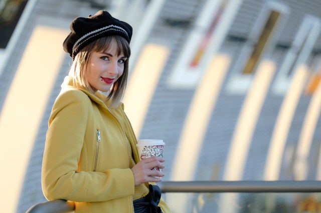 coucou je ne porte pas cette couleur mais comme elle te va super bien en tout cas, tiens un Starbuck, j'y suis passée hier