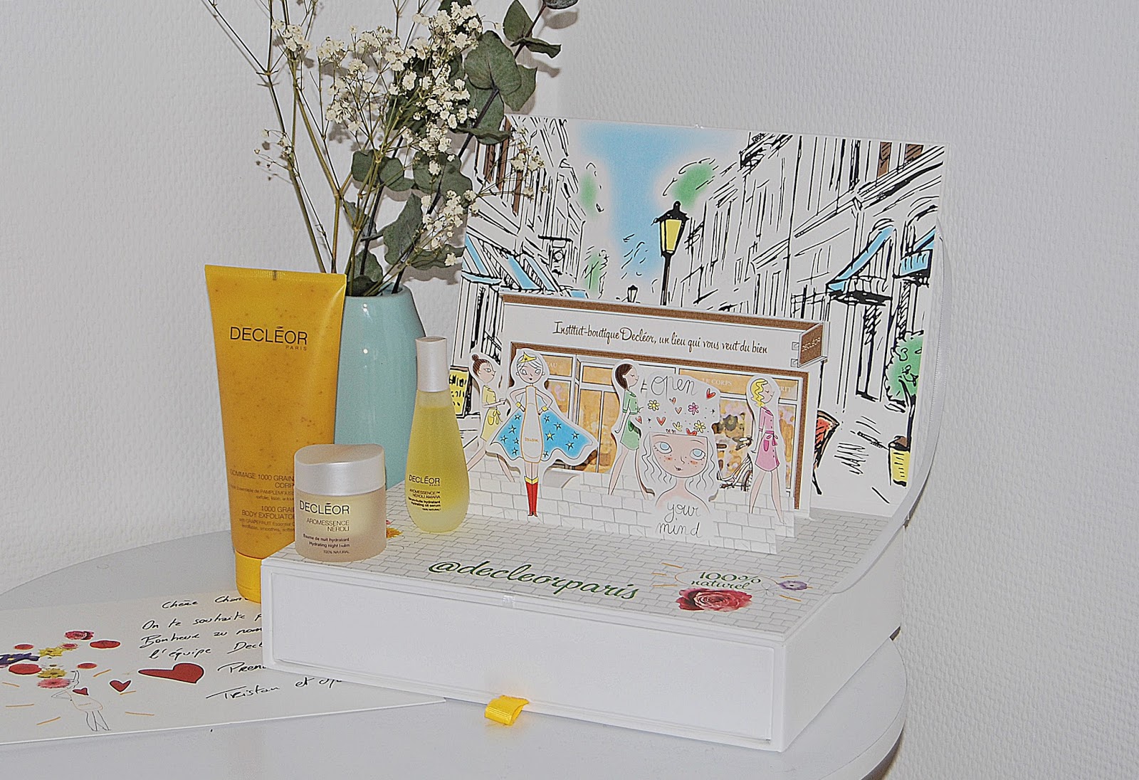 # Hello les filles !! Ce matin je vous retrouve pour vous présenter la plus mignonne des box beauté du moment : La Secret Box Aromessence Decléor , reçu via la plateforme Hivency ! Decléor est une marque spécialisée dans l’aromathérapie cosmétique. Elle propose de prendre soin de la peau, du corps et de l’esprit grâce à des formulations ultra-sensorielles. On la retrouve principalement en instituts et SPA. J’ai reçu cette sublime box il y a quelques jours à présent et j’étais pressée comme une folle de vous la présenter tellement je l’aime d’amour, et je n’en rajoute pas !! MES AVIS : Le packaging est complètement dingue ! Un très beau coffret pop-up avec de sublimes illustrations parisiennes, dans lequel se trouve un tiroir avec à l’intérieur deux produits de la gamme Aromessence Neroli , un baume de nuit et un sérum-huile. Et OMG quelle découverte ! Le Baume de nuit est génial, sa texture ultra fondante pénètre la peau , l’hydrate en une seconde et l’odeur est à tomber !!! La texture est différente d’une crème classique, il faut la faire chauffer entre les mains avant de l’appliquer sur la peau, mais ça rend son application encore plus agréable. Le sérum-huile est parfait aussi, j’avais peur qu’il soit trop gras pour ma peau mais pas du tout, la texture est soyeuse , ne laisse pas de film gras. et par dessus tout, ces deux produits sont à base d’huiles essentielles et 100 % naturel ! L’odeur de Néroli et d’huiles essentielles est DIVINE, c’est un énorme coup de cœur, mais vraiment vraiment, je craque totalement sur cette gamme ! C’est un vrai rituel que je vais adapter tout les soirs à présent, une routine détente , apaisante et surtout hyper relaxante dont je ne pourrais plus me passer, et croyez moi , j’en reçois et j’en test des produits chaques semaines! Pour terminer, en plus du coffret, il y avait aussi un Gommage 1000 grains pour le corps , encore un produit parfait , vous vous en serez douté ! C’est un gommage au sucre, c’est ce que je préfère! La texture est parfaite, les grains sont redoutables, la matière se transforme ensuite en huile laiteuse au contact de l’eau, pour une peau ultra douce. L’odeur d’huile essentielle de Pamplemousse est ultra gourmande encore un sans faute ! LES PRIX : Baume de nuit hydratant 39,95€ les 15 Ml chez Sephora / Sérum-huile hydratant Néroli 52,50€ les 15 Ml chez Sephora / Gommage 1000 grains 33€00 les 200 Ml chez Sephora . Les prix sont certes un peu élevé mais croyez moi, ça en vaut largement la peine vu la qualté des produits !! Et vous connaissiez vous cette marque ? Aviez vous déja testé ces produits ? J’attends comme d’habitude vos avis et petits mots !!!