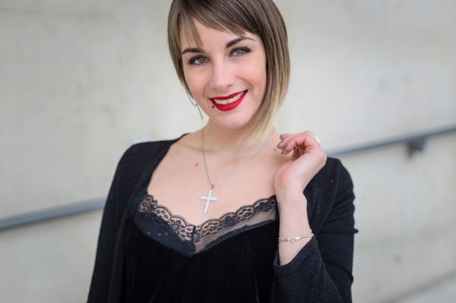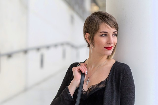 Alors je te rassure direct : ta coupe courte ne te vieillit absolument pas, au contraire elle te convient carrément bien !! Et puis avec ton look du jour, elle est même d'enfer ! Tu portes super bien ta trentaine 🙂