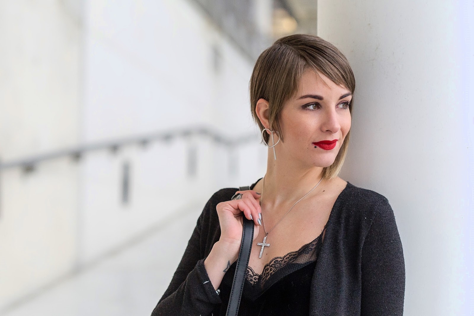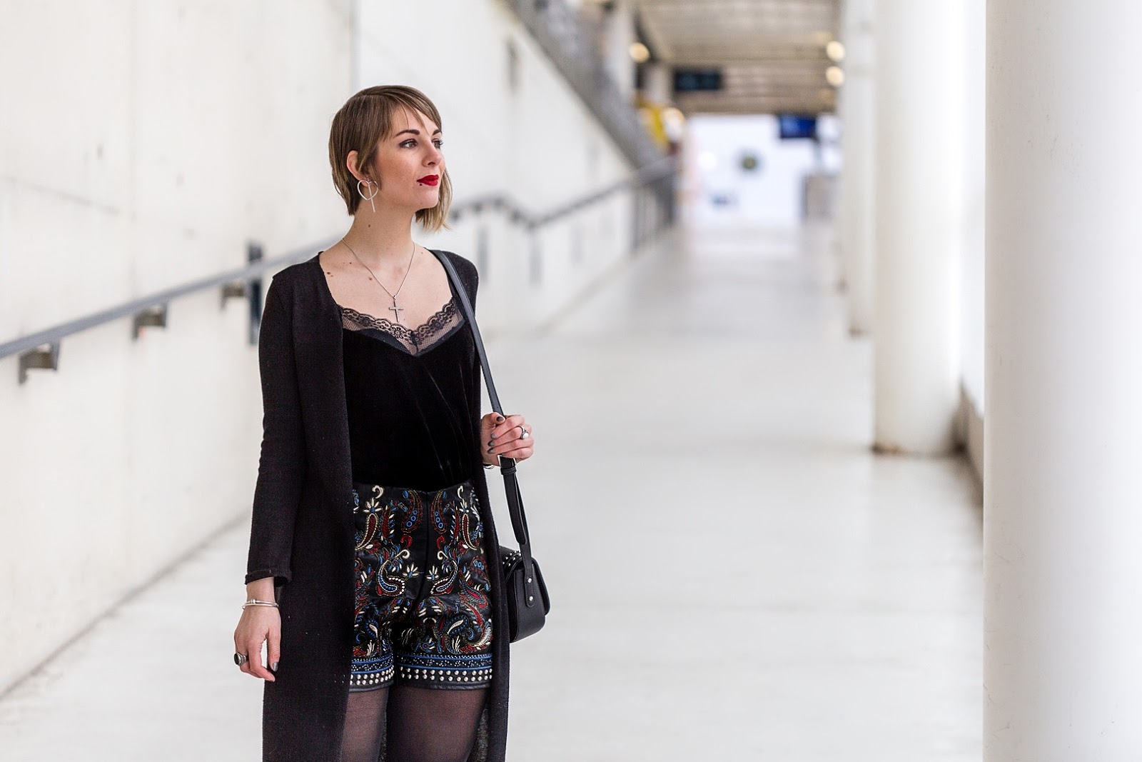 # Helloooo les filles, on se retrouve ce matin avec le second LOOK de la semaine !!! Je vous présente enfin ma nouvelle tête et mes cheveux courts! Vous avez été nombreuses à suivre toute cette aventure capillaire sur Instagram et vous avez beaucoup aimé le résultat final, je vous en remercie beaucoup ! J’ai coupé tout court, j’avais envie de changement, d’une coupe de caractère pour mes 30 ans , d’affirmer un peu mon age !! Je ne sais pas si c’est réussi, généralement , on dit toujours que les coupes courtes ça vieillis, mais pour le coup, je n’en suis pas si sûre! Enfin en tout cas, j’adore totalement, et Clément aussi, donc c’est déjà ça ! Côté tenue, j’ai fait appel à mon ami Jo Laurent pour cette série de photos, afin de vous présenter ce short en simili-cuir à broderies et détails cloutés déniché dans une petite boutique sur Avignon qui mérite vraiment le détour : NEOTRASH au 1 Rue Henri Fabre. Ne vous arrêtez pas au nom, dans ce petit shop, on ne trouve rien de trash, mais que des pièces tendances et pointu, un brin bohème, en passant par du rock-chic, sélectionnées avec soin par Axelle, la gérante . Il y en a pour tout les goûts et toutes les tailles, du plus classique à des pièces plus travaillés comme le short que j’ai choisi, en passant par l’accessoire et quelques bijoux . Les prix restent correct et tout à fait abordable et la qualité est au RDV ! En un mot J’ADORE ! C’est une superbe petite boutique qui mérite vraiment d’être connu de tous, et c’est pour ça surtout que je vous en parle ! Pour celles que ça intéressé, Axelle propose également des shopping nocturne les premiers jeudi du mois , et la toute dernière nouveautés qui plait beaucoup aussi, c’est le « coin seconde main » avec des piéces hyper abordables. J’ai aussi craqué sur un débardeur en velours et dentelle, je trouve ça hyper féminin et canon à souhait ! Vous connaissiez déjà mes bottines et mon sac à main que je ne vous présente plus, ça donne un look vraiment sympa, que j’aime beaucoup , pas vous ? J’attends vos avis et petits mots et vous envois du LOVE , comme toujours!!