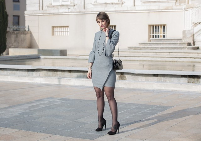 # Salut les filles ! J’espère que vous allez bien? Comme promis on se retrouve avec mon second et dernier look spécial St valentin ! Cette fois çi, je vous présente une jolie petite robe grise déniché sur Rosegal et mon manteau long que j’adore, déjà vu ici et là , shooté cette semaine avec mon ami photographe Jeremy Sinka ! Pendant que chez certains il neige en ce moment, nous dans le sud nous avons beau temps, les températures sont fraîches, certes, mais je peux sans soucis me permettre une robe avec des collants et un manteau !! Une tenue chic et élégante que Clément adorera à coup sûre !! Perso, je craque sur le détail des manches évasés ! Le petit sac lui, vient du site Gamiss, dont je vous avais déjà fait une petite sélection ici . La qualité est top, j’en ai commandé 3 autres que je vous présenterais prochainement d’ailleurs. Bref, nous cette année , nous sortons manger dehors, dans le premier restaurent où nous avions manger en tête à tête il y a deux ans déjà pour notre premier RDV ! Et vous, quoi de prévu ? J’espère que vous aimerez cette tenue, j’attends vos avis biensûr , et je vous dis à plus tard, j’ai d’autres looks à venir cette semaine et même un duo que nous aurions aimé vous présenter pour cette jolie date, mais malheureusement, le colis n’est pas arrivé à la maison à temps, dommage! Joyeuse St Valentin, seule ou accompagnée, prenez soin de vous! 💘