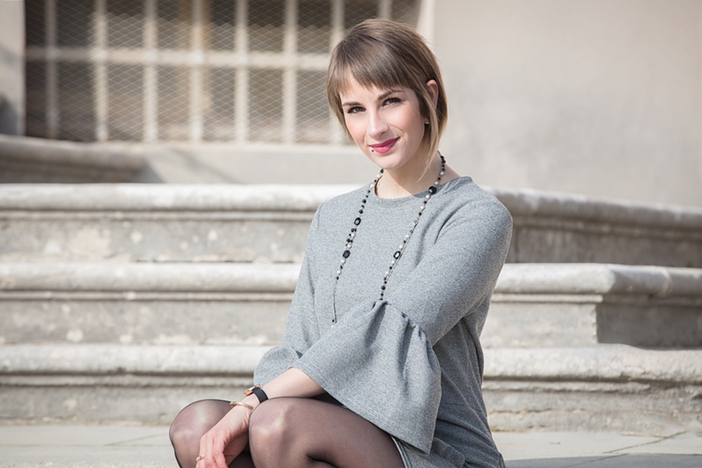 Elle est jolie aussi bien casual que chic j’aime beaucoup ! Tu la portes super bien en plus. Je suis fan de gris!