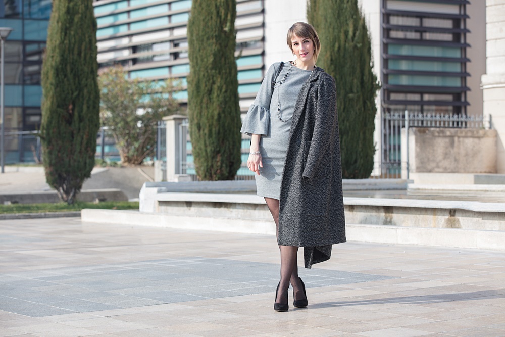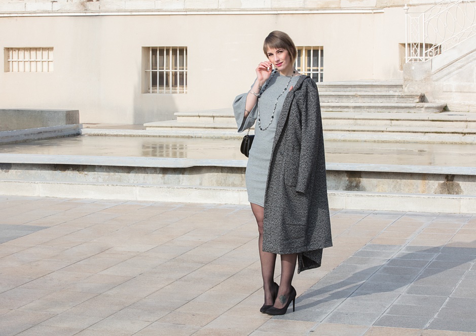# Salut les filles ! J’espère que vous allez bien? Comme promis on se retrouve avec mon second et dernier look spécial St valentin ! Cette fois çi, je vous présente une jolie petite robe grise déniché sur Rosegal et mon manteau long que j’adore, déjà vu ici et là , shooté cette semaine avec mon ami photographe Jeremy Sinka ! Pendant que chez certains il neige en ce moment, nous dans le sud nous avons beau temps, les températures sont fraîches, certes, mais je peux sans soucis me permettre une robe avec des collants et un manteau !! Une tenue chic et élégante que Clément adorera à coup sûre !! Perso, je craque sur le détail des manches évasés ! Le petit sac lui, vient du site Gamiss, dont je vous avais déjà fait une petite sélection ici . La qualité est top, j’en ai commandé 3 autres que je vous présenterais prochainement d’ailleurs. Bref, nous cette année , nous sortons manger dehors, dans le premier restaurent où nous avions manger en tête à tête il y a deux ans déjà pour notre premier RDV ! Et vous, quoi de prévu ? J’espère que vous aimerez cette tenue, j’attends vos avis biensûr , et je vous dis à plus tard, j’ai d’autres looks à venir cette semaine et même un duo que nous aurions aimé vous présenter pour cette jolie date, mais malheureusement, le colis n’est pas arrivé à la maison à temps, dommage! Joyeuse St Valentin, seule ou accompagnée, prenez soin de vous! 💘