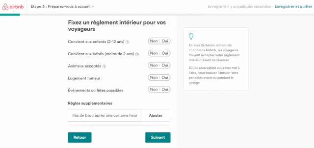 Devenir hôte implique certaines responsabilités. Voici quelques informations qui vous seront utiles si vous souhaitez vous y mettre aussi . Remplissez bien votre règlement intérieur sur le site et un manuel de la maison pour que les voyageurs puissent savoir à quoi s’attendre, par exemple s’ il est autorisé de fumer, si les animaux sont autorisés, précisez également si vous en avez chez vous, notez le mot de passe du Wifi, un numéro à joindre en cas d’urgence , le code du portail, vous pouvez fournir un numéro de taxi et les numéros d’urgence (pompier, police, etc . Vous pouvez aussi prévoir une petite note pour indiquer le fonctionnement de la machine à laver, du chauffage etc . Lors d’une location Airbnb, ce sont les petits détails qui font la différence.