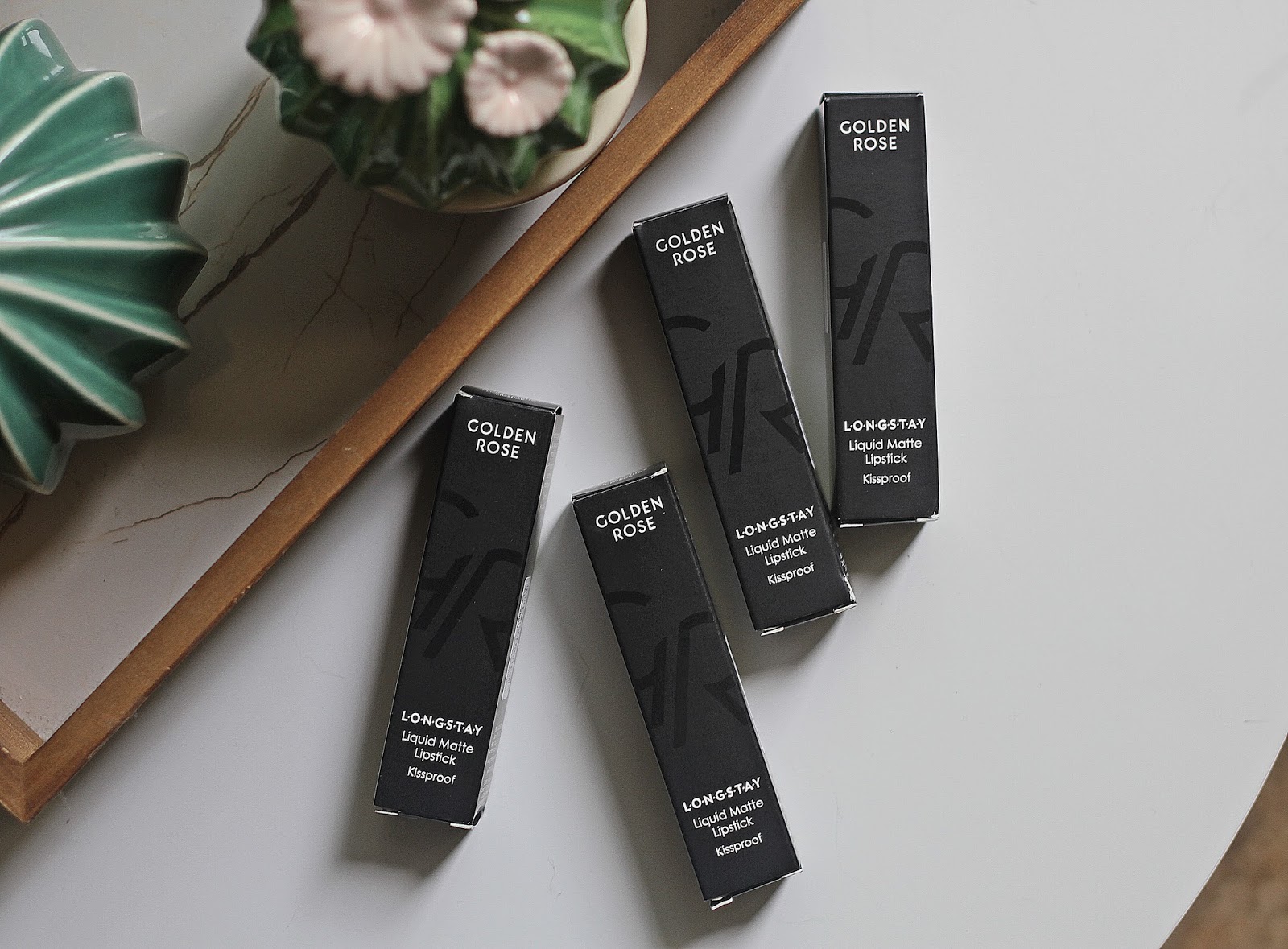 # Hello les chéries, j’espère que vous allez bien ? Ce matin je vous retrouve avec une nouvelle revue beauté ! J’ai reçu récemment quelques nouveautées via le site Cookie’s Makeup (que je vous avais déjà présenté ici ) les Longstay Liquid Matte Lipstick de la marque Golden rose ! Vous connaissez mon amour pour les rouges à lèvres et particulièrement les mats, et bien ceux là sont de loin mes favoris de l’univers !!! J’en ai plus d’une dizaine de la marque et je ne m’en lasse décidément pas! MON AVIS : Le packaging est toujours aussi classe, sobre mais totalement efficace! On découvre la couleur à travers le tube et ça c’est vraiment un plus !! Cette fois çi, j’ai reçu 4 teintes : le 05 Sorbet Cassis , le 18 Charlotte , 21 Chamallow et le 22 Speculos . Pour le reste, rien n’a changé : le pinceau est fin, l’application parfaite , le produit sèche vite mais surtout ne dessèche pas les lèvres !! La matière est confortable du début à la fin, la pigmentation est plus que dingue , le fini mat est magnifique, c’est un sans faute !!! Niveau tenue, c’est impeccable jusqu’au repas, ce serait peut être le seul bémol à noter, mais pour 5€90, il n’y a franchement pas à se plaindre !!!!! Et vous, les connaissiez vous ?? Avez-vous déjà testé cette marque ? J’attends vos avis et petits mots les girls !! ENJOY !! 💋💋