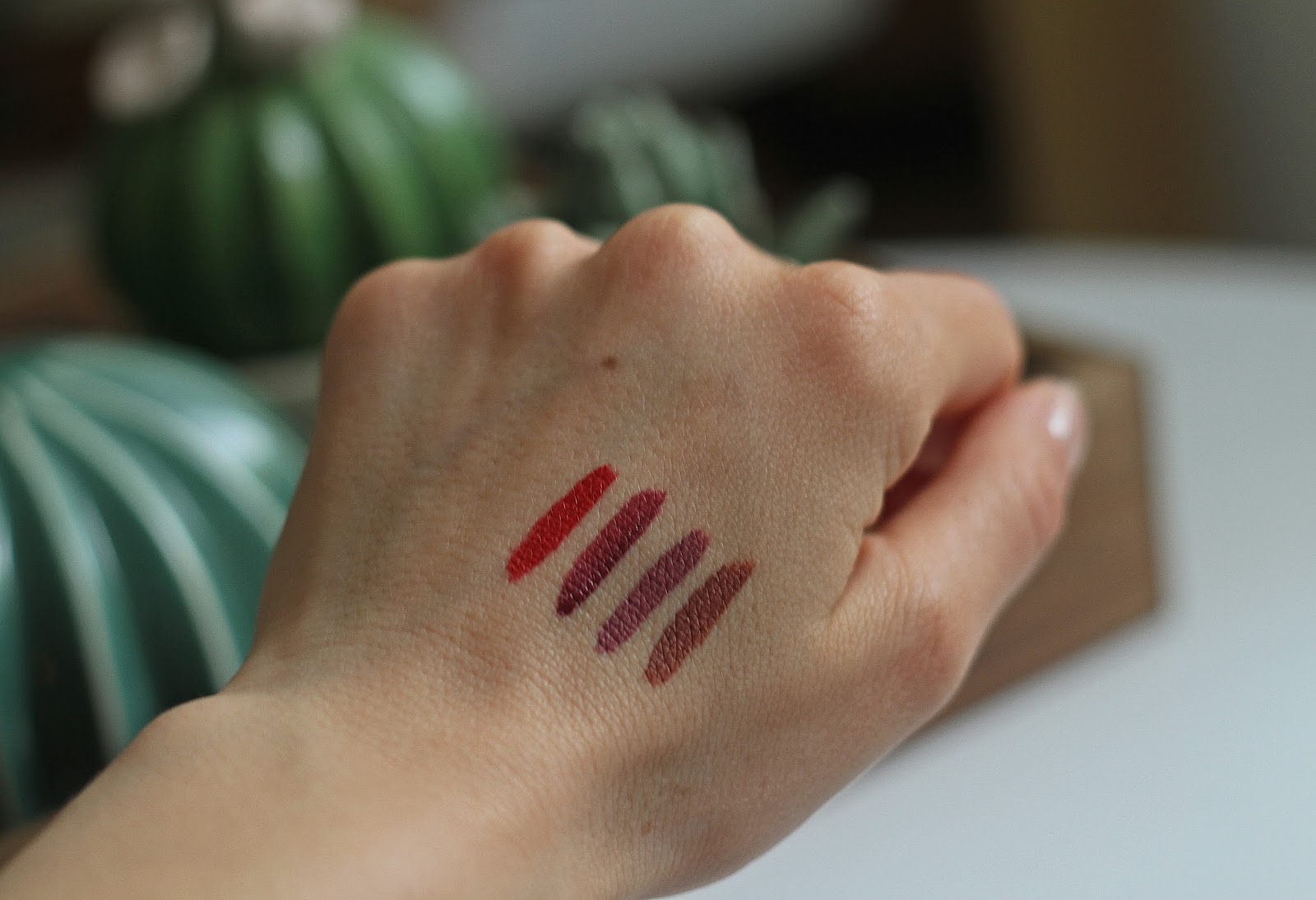 Sauf le rouge sinon, les trois autres, c'est tout à fait mon style en mat.. je n'arrive pas à porter du brillant….peut être un jour
