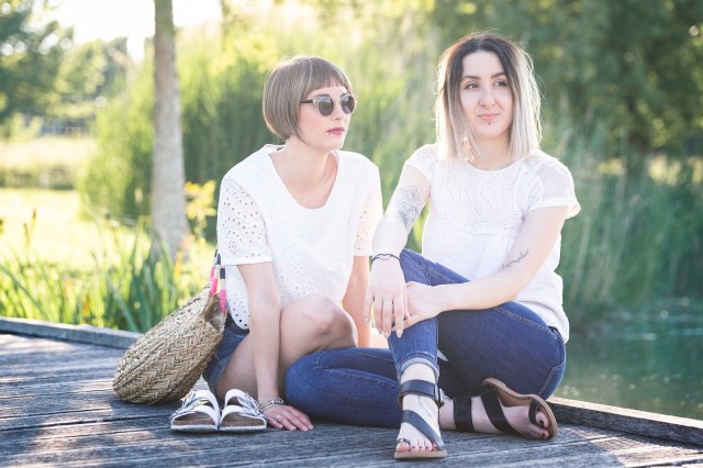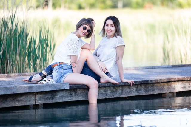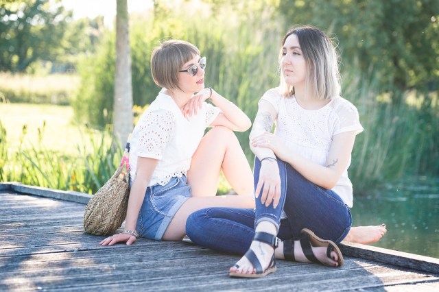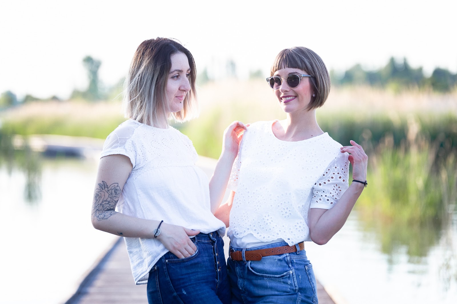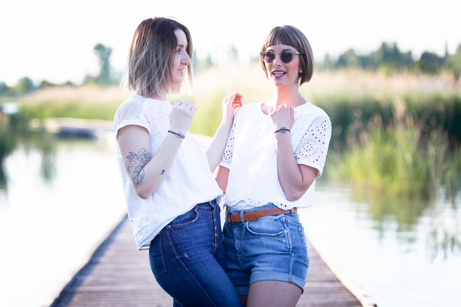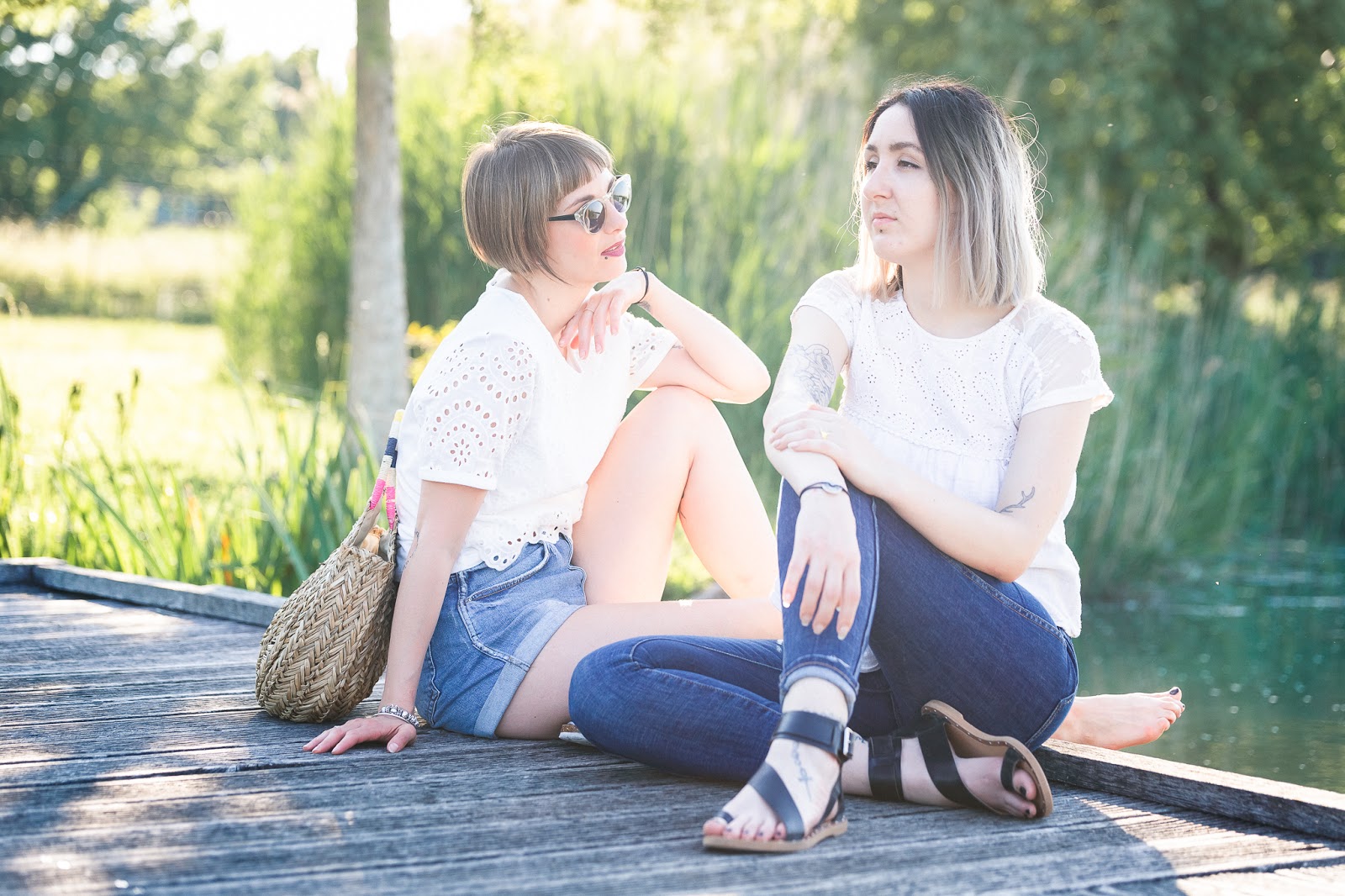 # Hello les amis ! J’espère que vous allez bien ? Ce matin je vous retrouve avec un LOOK EN DUO , mais cette fois çi, ce n’est pas Clément qui prend la pose à mes côtés , mais Laetitia l’une de mes meilleures amies ! Laetitia a comme moi le goût de la mode, de la déco et des jolies choses, et je trouvais sympa l’idée de lui proposer de temps en temps de poser à mes côtés! Non ?! A cette occasion, j’ai évidemment fait appel à mon ami Yann Sicot pour les photos, et nous nous sommes retrouvé dans un endroit où l’on adore se balader et refaire le monde, un petit lac tout proche de chez nous. Pour cette série pleine de tendresse (vous avez vu comme je m’applique à l’écriture) on vous propose deux jolies tenues printanières en jeans et dentelles, et on vous présente surtout ces deux bracelets AVANI que la marque nous a envoyé récemment . Le Deep Emotion couleur argent pour Laeti et le Sunrise Sail couleur bronze pour moi. Des médaillons fabriqués en France de façon artisanale dans un atelier de manufacture aux compétences rares. J’aime beaucoup les valeurs de la marque , qui prône l’aventure et l’audace. Inspirées par l’océan, ces bracelets s’adressent aux marins et matelots, aux capitaines, aux pirates et corsaires, aux voyageurs, aux aventuriers, aux poètes, aux amoureux de la nature et des océans, afin d’accomplir vos rêves d’évasion, traverser les flots et les ouragans, naviguer sur la mer des tropiques, courir dans les vagues , admirer les étoiles, parcourir le monde à la recherche d’îles lointaines. La marque est également très engagé dans la sauvegarde des océans : plus d’infos ICI a ce sujet. Bref, c’est pour nous un vrai coup de cœur et nous sommes très heureuse de représenter ces valeurs ! Côté tenue (quand même) pour ma part je vous présente un total look Kiabi (short en jeans et top avec dentelles anglaises + panier) mes sandales avec boucles western viennent de chez My Lemon Factory (Avignon) . Laetitia elle, porte un jeans taille-haute Zara (ancienne co) et un top en dentelle Kiabi également . On espère vivement que vous aimerez ces photos, c’était une première pour elle et j’espère que vous l’encouragerez à recommencer! On attends vos commentaires et petits mots !! A très vite et bon weekend ! ENJOY !