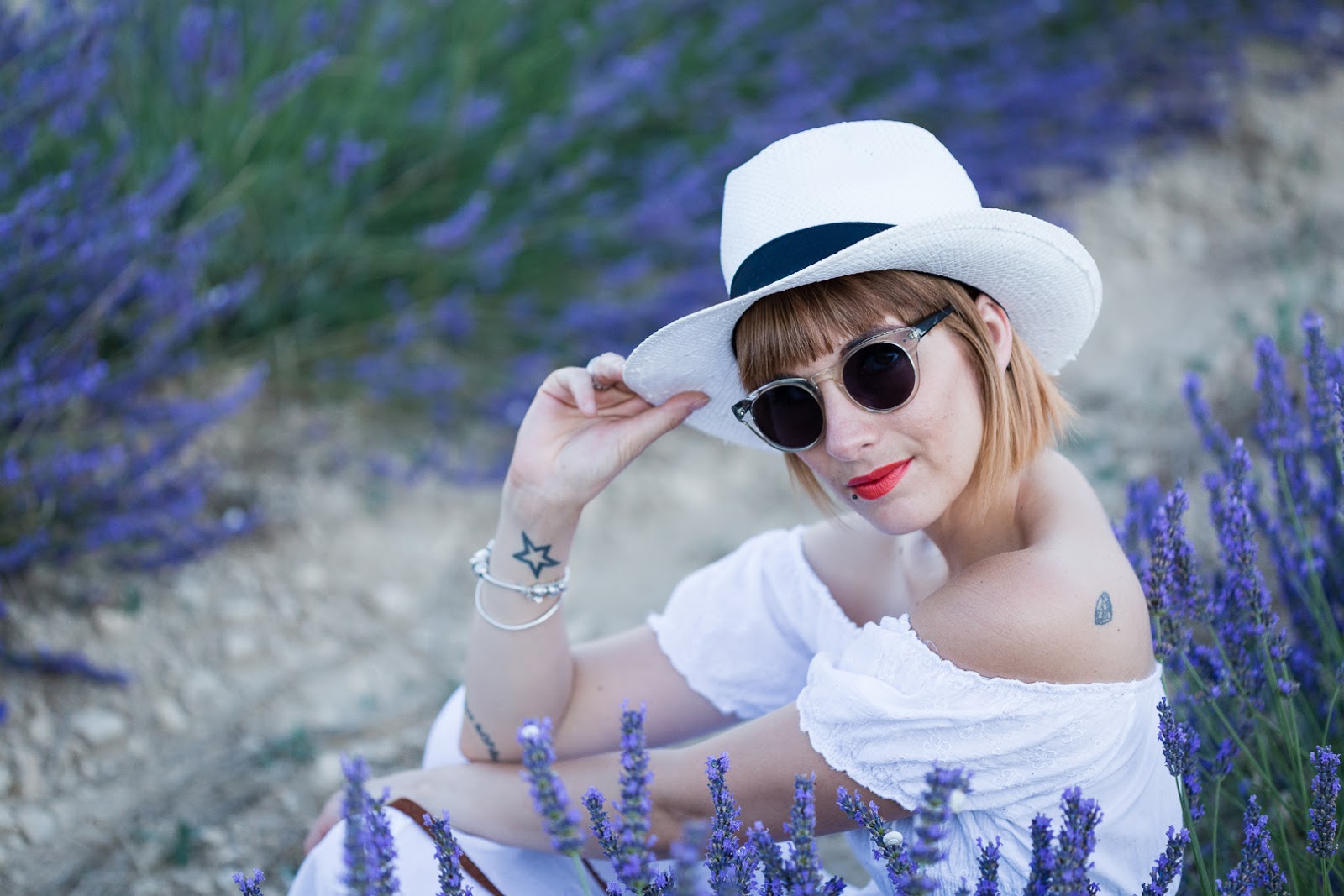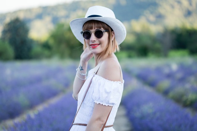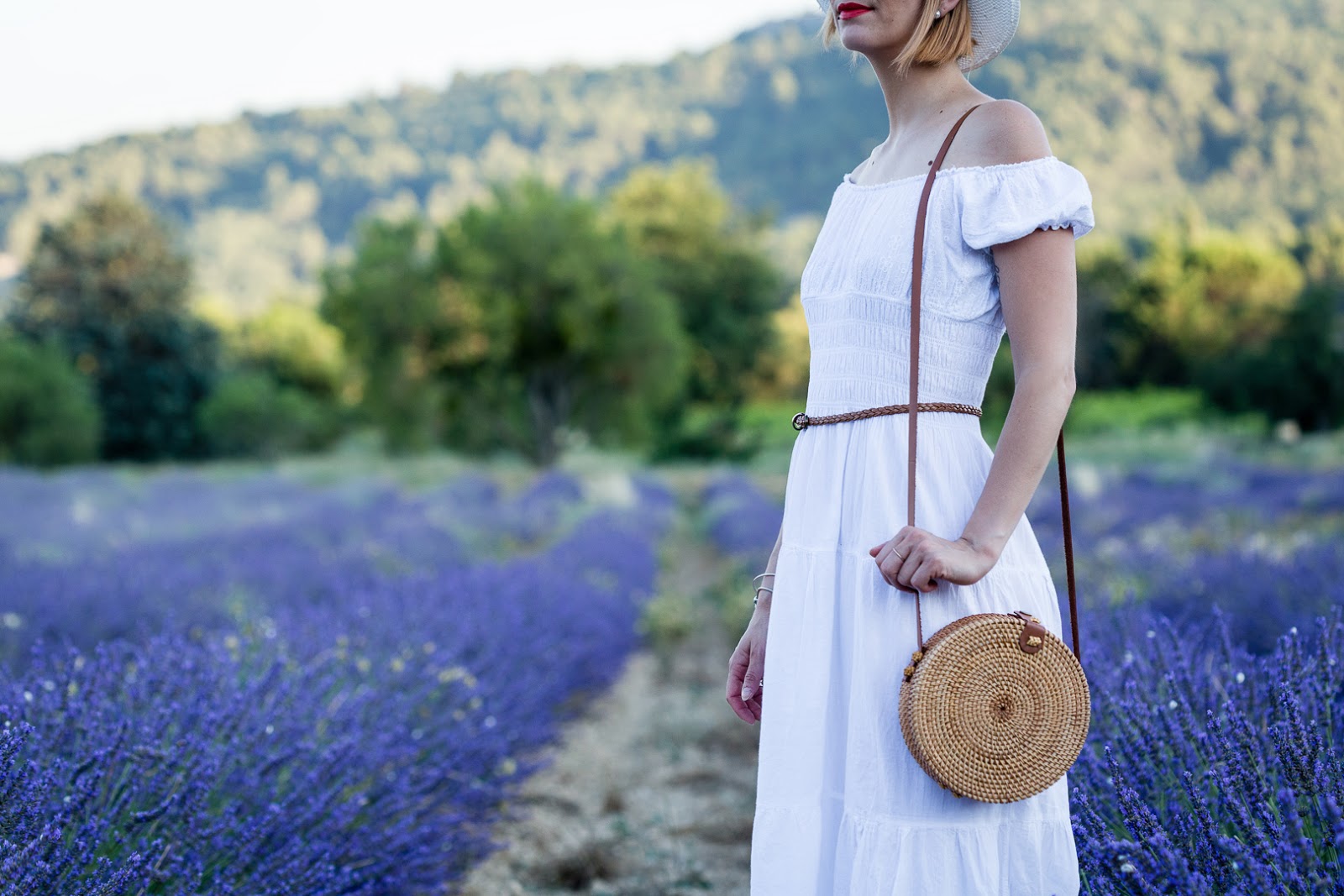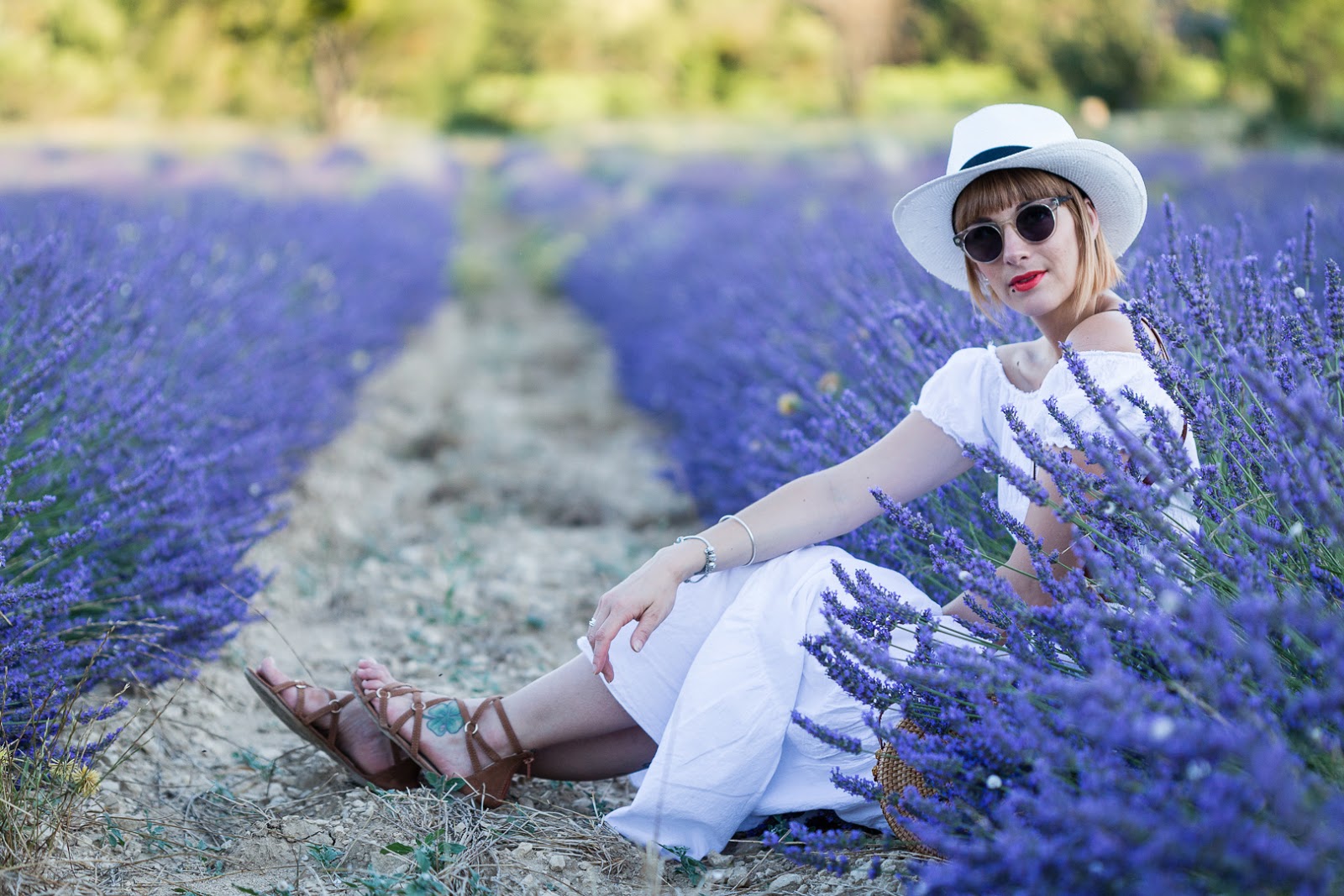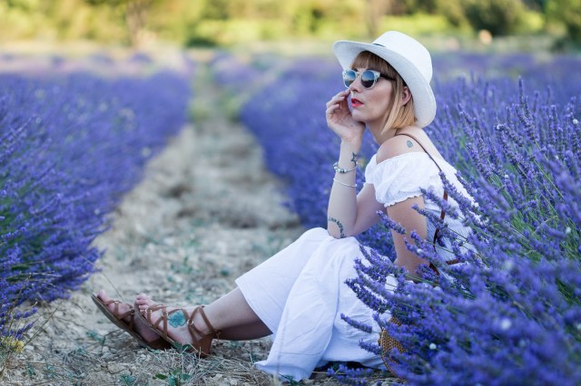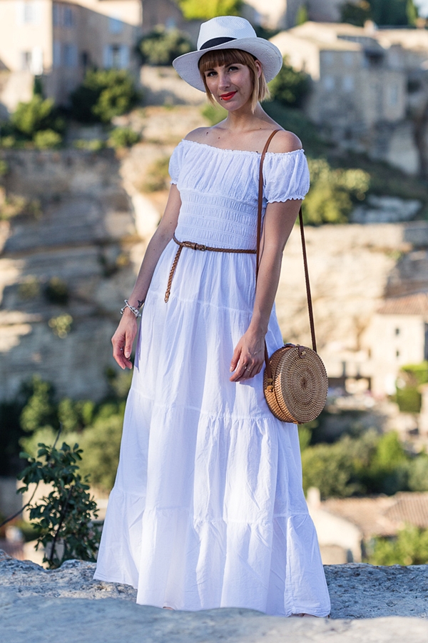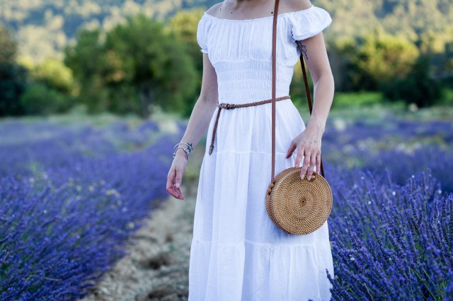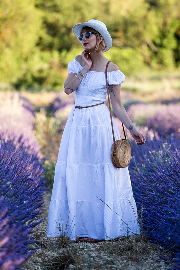 # Hello les chéries, j’espère que vous allez bien ? Ce matin je vous retrouve avec une série de photos que j’avais hâte de vous montrer, et pour cause, cela fait plus d’un an que j’attendais la saison des lavandes pour aller y faire quelques jolies photos! J’avais raté mon coup l’an dernier en arrivant trop tard après la coupe , hors de question qu’elles me passent sous le nez cette année! J’ai donc fait appel à mon ami Joe Laurent et nous nous sommes retrouvé du côté de Gordes, à quelques minutes à peine de l’Abbaye de Sénanque , dont les champs de lavande sont en fait strictement interdit d’accès , et complètement muré ! Déception! Bref, pour en venir à ma tenue, j’étais obligé de choisir cette robe longue blanche et bohème pour ces photos, c’était la couleur qu’il fallait pour me détacher du fond, sans oublier mon indétrônable chapeau et mes lunettes de soleil ( à savoir, je ne supporte pas la lumière du soleil, j’ai les yeux hyper-sensible). Je termine bien-sur avec mon sac en rotin (que j’aime d’amour) déniché sur le site Today Genius … J’ai choisi le modèle Bali-classique mais dépêchez-vous, les stocks sont ultra limité, j’aurais aimé un autre modèle mais il n’est plus dispo (rupture fournisseur) … Et sinon, le BON PLAN du jour , c’est que vous avez droit à -10% sur votre prochaine commande sur le site, avec le code « Charlotte » , beaucoup trop cool non ? J’espère que vous pourrez vite en profiter !! J’attends comme toujours vos petits mots et commentaires et vous dis à très vite les Girls !! ENJOY !!