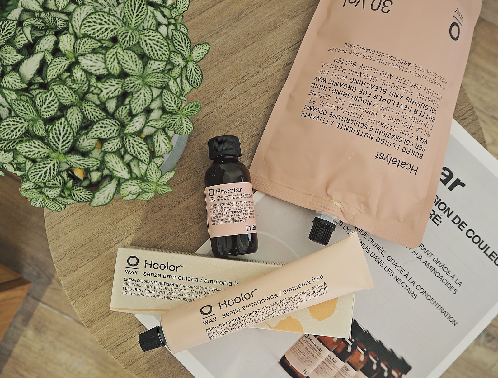 # Hello les filles, comment allez-vous ce matin ? Aujourd’hui je reviens vers vous pour vous parler à nouveau de la marque OWAY, que je vous ai déjà présenté ICI il y a quelques semaines et que vous aviez l’air d’apprécier. Cette fois çi, j’ai testée les colorations ! De ce côté là, la marque frappe encore fort en proposant des produits allégés un maximum en produits chimique. Nous avons 3 gammes différentes : HColor, HNectar et HMelt pour un mode de coloration plus doux pour nos cheveux, mais aussi pour la planète. La première, HColor est une coloration-soin sans ammoniaque, à base d’huiles biodynamiques et biologiques, et de beurre d’Illipé qui nourrit, protège et restaure la tige capillaire durant le temps de pose. Les cheveux sont ainsi très doux, brillants et hydratés. La coloration devient un vrai moment de détente parfumée et agréable, qui a un effet positif sur la fibre des cheveux . On retrouve 94 nuances intenses et brillantes dans cette gamme. La seconde gamme , HNectar est une coloration plus pure , avec lifting du cheveu intégré et encore moins de produits chimiques. À base de nectars de sureau biodynamique, de mauve biologique et de Papamiel, ce concentré fluide sucré restructure la fibre capillaire de l’intérieur en lui donnant du tonus et de l’éclat. C’est une formule extrêmement délicate , sans PPD , sans résorcine et sans alcool , qui sont à la base de nombreuses allergies chez les gens sensibles. Cette infusion de couleur restructure le cheveu, amplifie son éclat et améliore la fibre capillaire dès la première application grâce aux nectars et à la haute concentration en sucres. La troisième et dernière gamme HMelt propose des pigments pures, issus de transformations alchimiques naturelles. On retrouve ainsi tout un panel de couleurs (du rose, au bleu, en passant par le vert et autres couleurs pastel) permettent au coiffeur de créer des effets audacieux et tendance. Extrêmement polyvalent, Hmelt peut aussi être mélangé à la couleur pour intensifier le résultat, l’enrichir de reflets ou corriger les tonalités indésirables. Mon avis : Aurélie, ma coiffeuse m’a appliqué HColor. Si vous vous souvenez bien, j’étais blond vénitien depuis cette été. Nous sommes partit cette fois çi sur un roux plus intense , aux reflets cuivrés que vous verrez sur les prochains shootings. Ma couleur est lumineuse et réchauffe mon teint. J’ai l’impression que mes cheveux ont gardé leur consistance naturelle, je ne les sens pas « chargés » en produits. En bref, je ne sais pas vous mais j’adore cette nouvelle tête ! Je suis passé par de nombreuses couleurs dans ma vie, j’ai eu longtemps les cheveux rouges d’ailleurs, et cette teinte flamboyante me ressemble totalement !! Vous aimez ? Je l’espère, j’attends comme toujours vos avis et commentaires !! ENJOY les filles, je pars en vacances !!