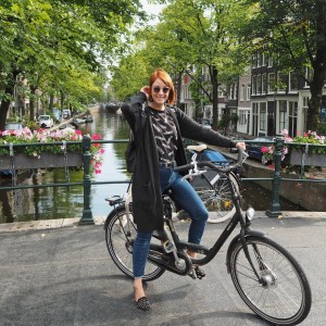 # Hello les filles, j’espère que vous allez bien ? Après avoir partagé avec vous toutes mes photos de mon séjour à Amsterdam sur Dear Pretty Voyage , je reviens par ici pour vous parler un peu plus en détails de notre balade en vélo avec AMSTERDAM VÉLO ! Je vous l’ai déjà expliqué, mais ici le vélo est le moyen de locomotion de 90% des habitants. Il y a plus d’un million de vélos en ville pour 800.000 habitants, imaginez un peu ! Un mode de vie, plus écolo et plus économique que j’ai adopté récemment d’ailleurs et que je valide totalement !! Du mec en costard à l’étudiant, en passant par la ménagère transportant enfants, animaux ou courses dans de gros vélos cargos, ici tout le monde à son vélo!