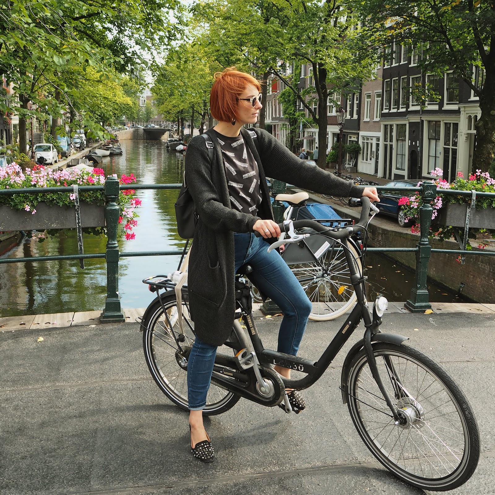# Hello les filles, j’espère que vous allez bien ? Après avoir partagé avec vous toutes mes photos de mon séjour à Amsterdam sur Dear Pretty Voyage , je reviens par ici pour vous parler un peu plus en détails de notre balade en vélo avec AMSTERDAM VÉLO ! Je vous l’ai déjà expliqué, mais ici le vélo est le moyen de locomotion de 90% des habitants. Il y a plus d’un million de vélos en ville pour 800.000 habitants, imaginez un peu ! Un mode de vie, plus écolo et plus économique que j’ai adopté récemment d’ailleurs et que je valide totalement !! Du mec en costard à l’étudiant, en passant par la ménagère transportant enfants, animaux ou courses dans de gros vélos cargos, ici tout le monde à son vélo!