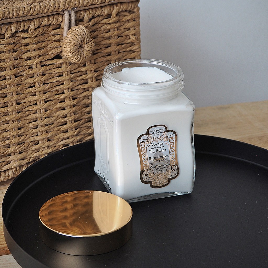 Le baume fondant est une merveille. A base de beurre de karité et d’huile d’amande douce BIO, on retrouve l’odeur enivrante, aux notes orientales, propre à la collection . Je l’applique sur tout le corps, en insistant particulièrement sur les parties les plus sèches. Sa texture riche et onctueuse fond sur l’épiderme pour un pur moment de bien-être. Il pénètre facilement et ne laisse pas d’effet gras sur la peau. Un vrai gros coup de coeur. Son prix : 44,00€