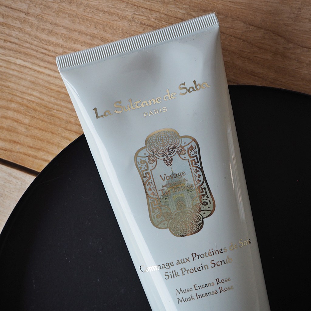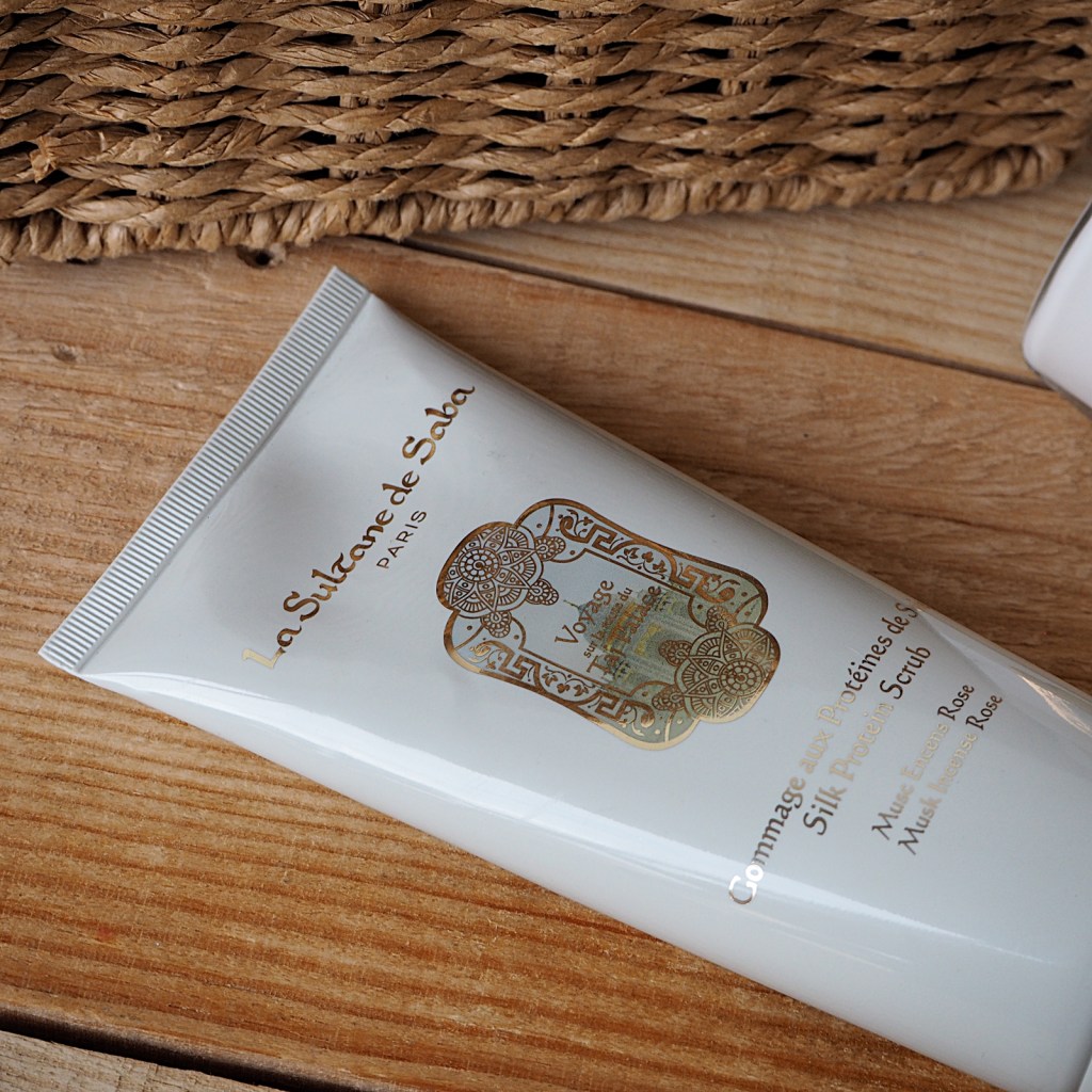 Le gommage à base de protéines de soie aux propriétés lissantes et fortifiantes, élimine les peaux mortes tout en maintenant l’hydratation de la peau et laisse un voile délicatement parfumé à l’Ayurvédique. Je l’utilise sous la douche, sur tout le corps, une à deux fois par semaine. Sa texture est un enchantement et je pèse mes mots ! On voudrait que le temps s’arrête pour profiter encore et toujours de son odeur, sa texture et surtout le résultat sur la peau…On ne s’en lasse pas! Son prix 35,00€