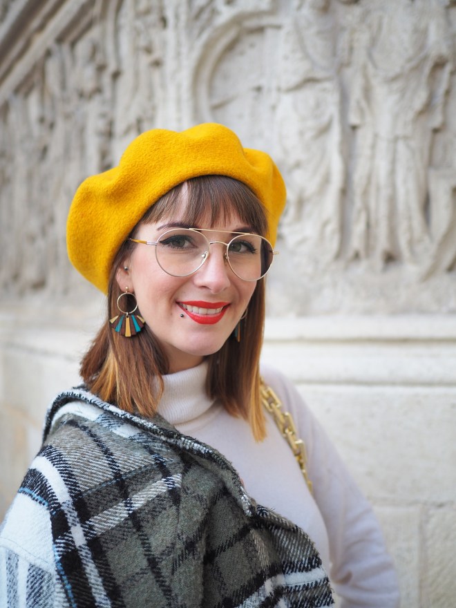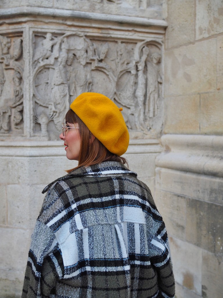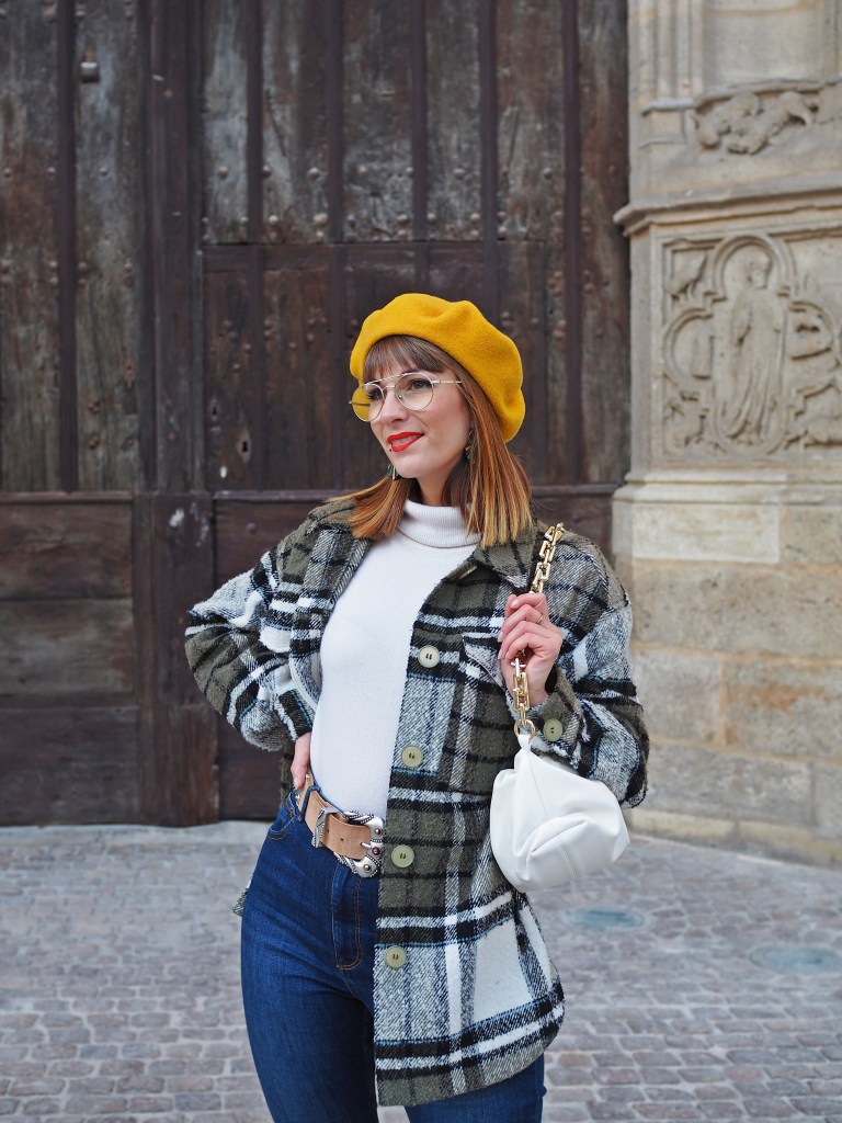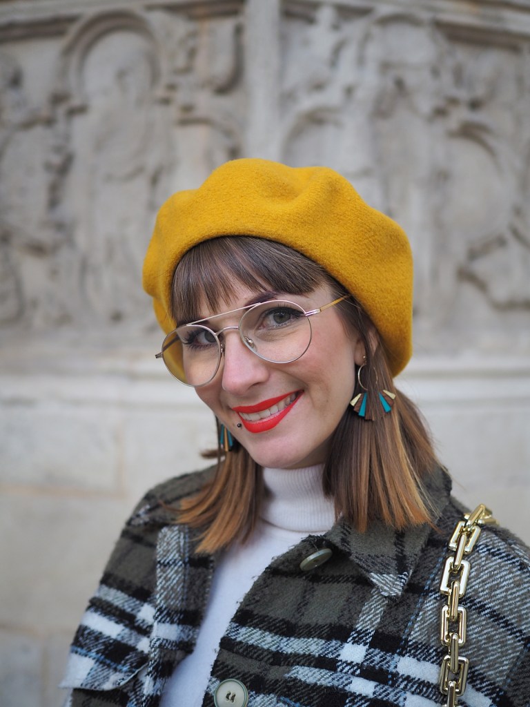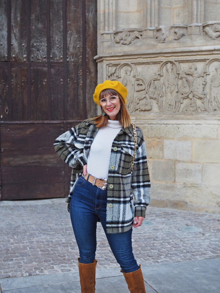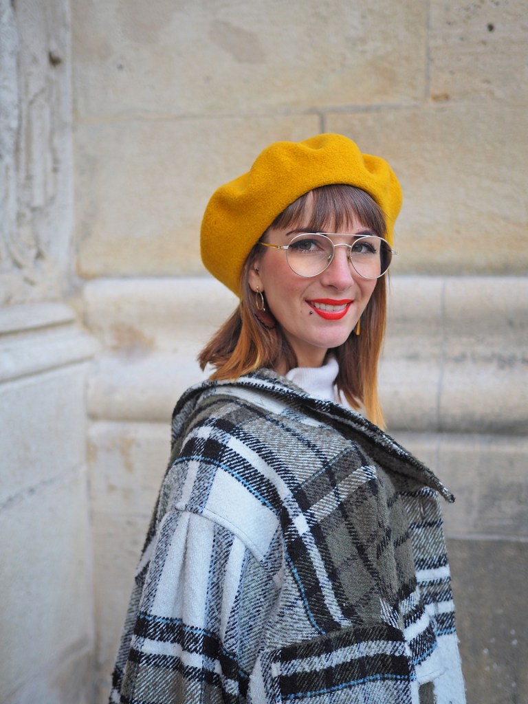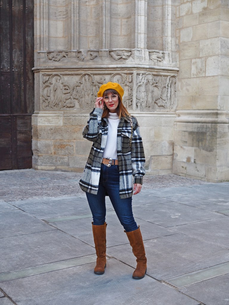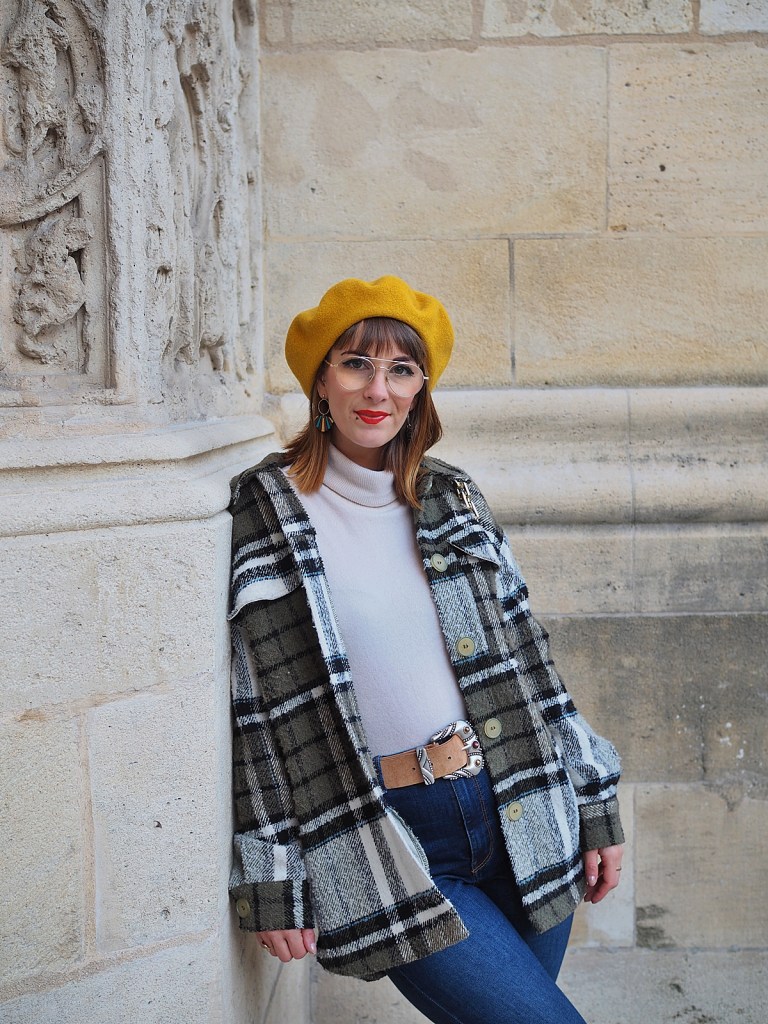 Hello les filles! Trés heureuse de vous retrouver avec un nouveau LOOK aujourd’hui, ça faisait longtemps, et ce sont pourtant les articles que je préfère! Mais bon, vous connaissez la chanson : Boulot et confinement ont eu raison de moi! Depuis mon arrivée sur Bordeaux, les sorties photos se font rares, j’étais donc ravie de rencontrer Alexandra (Mademoiselle Modeuse) pour ce shooting ! Enfin un être humain sympa dans cette ville où je ne connais personne d’autre que mon chéri ! Pour l’occasion, nous nous sommes retrouvé du côté de la Place Pey-Berland au pied de la Cathédrale Saint-André. C’est un endroit que j’aime beaucoup, la cathédrale est absolument magnifique, et tellement impressionnante, je ne m’en lasse pas ! Côté LOOK, rien de bien fou, mais une tenue du quotidien que j’aime beaucoup : un jeans taille-haute, un petit pull fin à col roulé, mais surtout ma veste à carreaux, que je porte depuis le début de l’automne mais que je n’avais pas eu le temps de vous présenter ici. Au niveau des accessoires, je ne vous présente plus mon béret jaune, ma ceinture est disponible chez Pimkie et mon petit sac fourre-tout que vous avez déjà vu par ici vient de l’Eshop Sendoora. Pour finir, mes bottes en cuir camel, viennent du site EMILIE KARSTON, je ne les quitte plus depuis que je les ai !!! Vous aimez ?? J’attend comme toujours vos petits mots et commentaires !! ENJOY !!!
